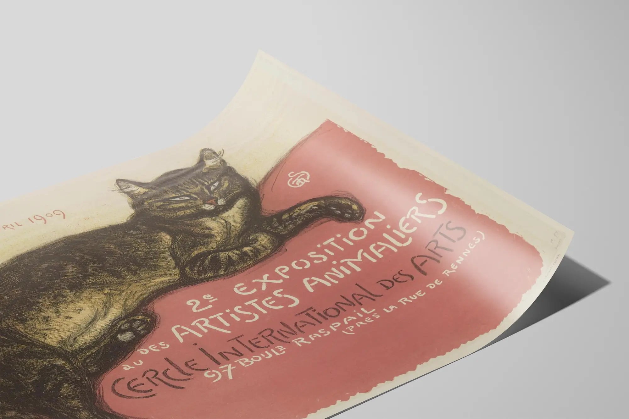 Découvrez cette affiche vintage unique représentant la 2ᵉ exposition des artistes animaliers au Cercle International des Arts, tenue du 30 mars au 25 avril 1909. Cette œuvre iconique met en scène un chat réaliste, délicatement posé sur un fond rose, mettant en valeur un style graphique typique du début du XXe siècle. Parfaite pour les amateurs de décoration murale vintage et d'art animalier, cette affiche est une pièce maîtresse pour sublimer tout intérieur avec une touche d'élégance et d'authenticité. Son graphisme doux et ses teintes rétro en font un choix idéal pour un poster ou une affiche décorative destinée à un salon, un bureau ou une galerie d'art. Ce tableau imprimé évoque l'histoire de l'art animalier et invite à la découverte d'une époque culturelle riche, parfaite pour les passionnés de décoration murale ciblée sur le thème des animaux. Que ce soit pour un cadre mural unique ou une collection d'affiches anciennes, cette pièce témoigne du charme intemporel des affiches d'exposition artistiques. Une décoration murale qui associe esthétique et histoire, à intégrer dans un intérieur au style classique, vintage ou éclectique.