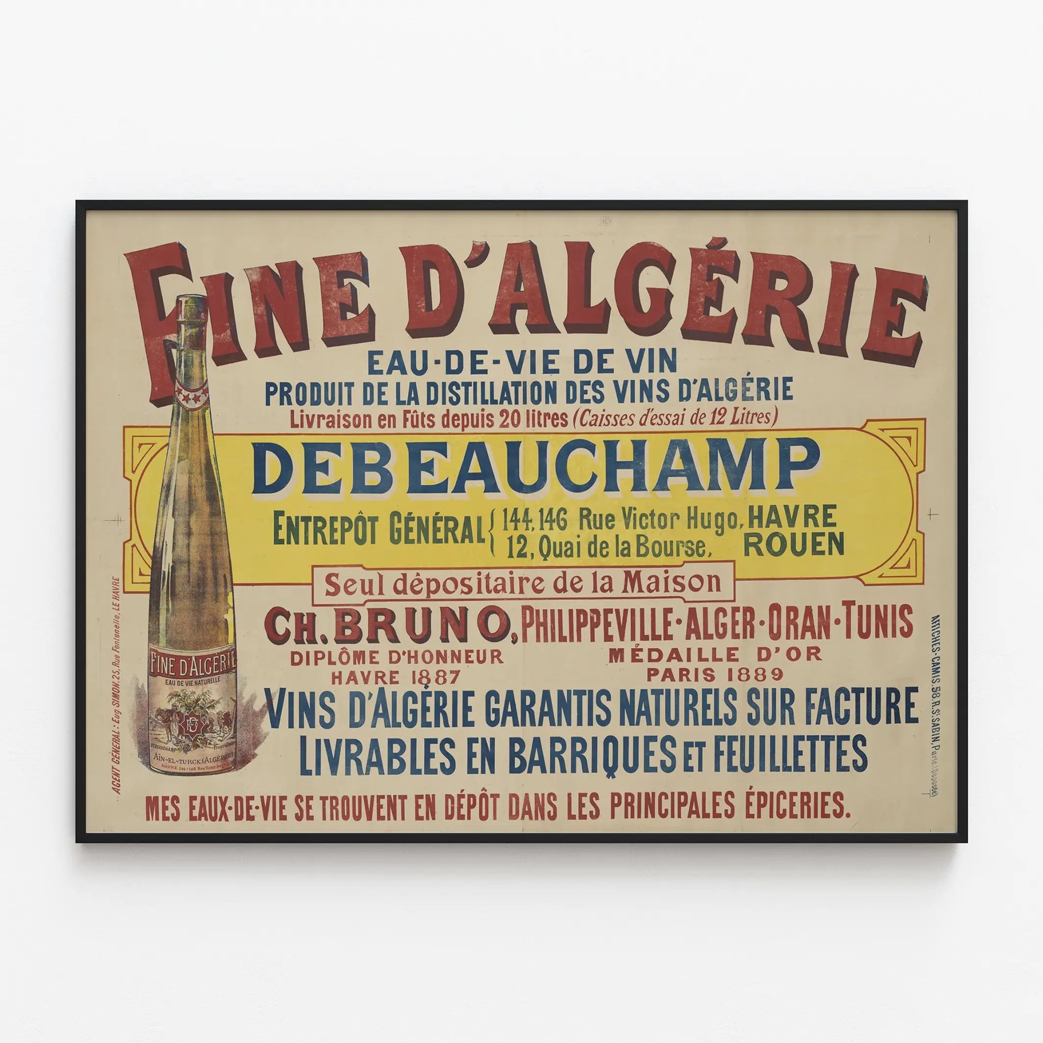 Affiche Vintage Fine d'Algérie Eau-de-Vie de Vin - Déco Murale Vintage