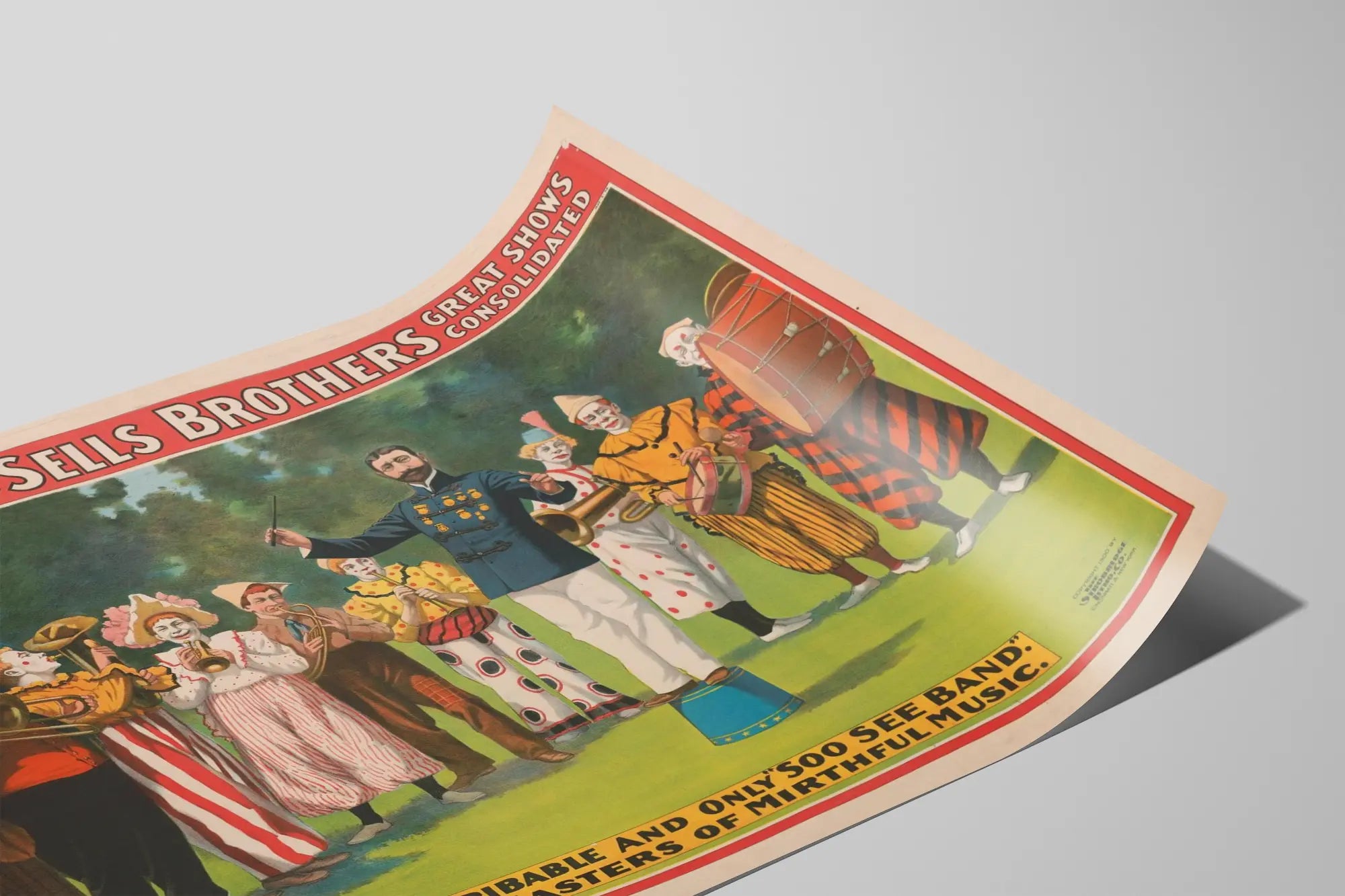 Affiche vintage Forepaugh & Sells Brothers Great Shows - Orchestre de clowns et musiciens