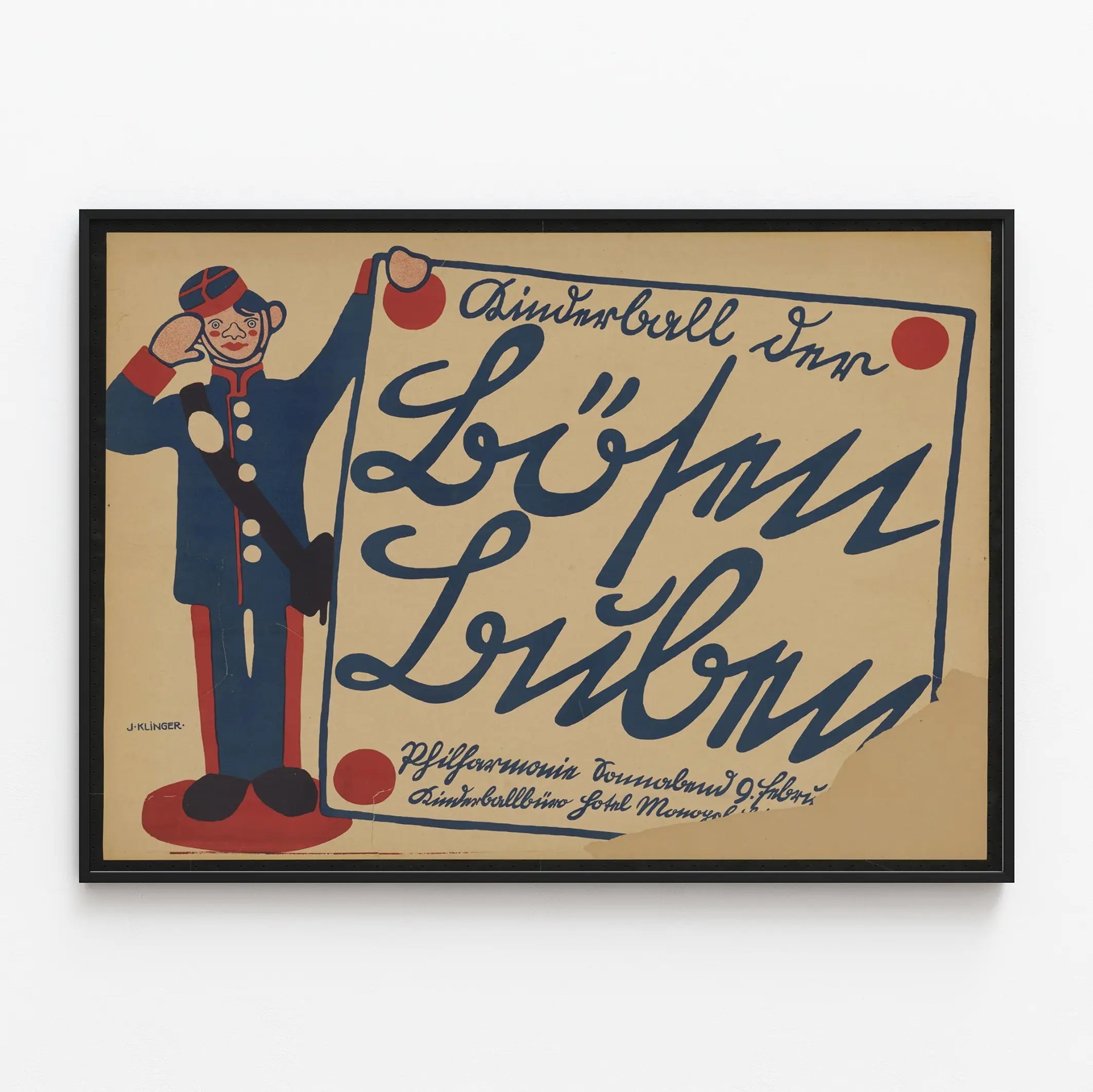Affiche vintage Kinderball avec soldat sybolique bleu et rouge