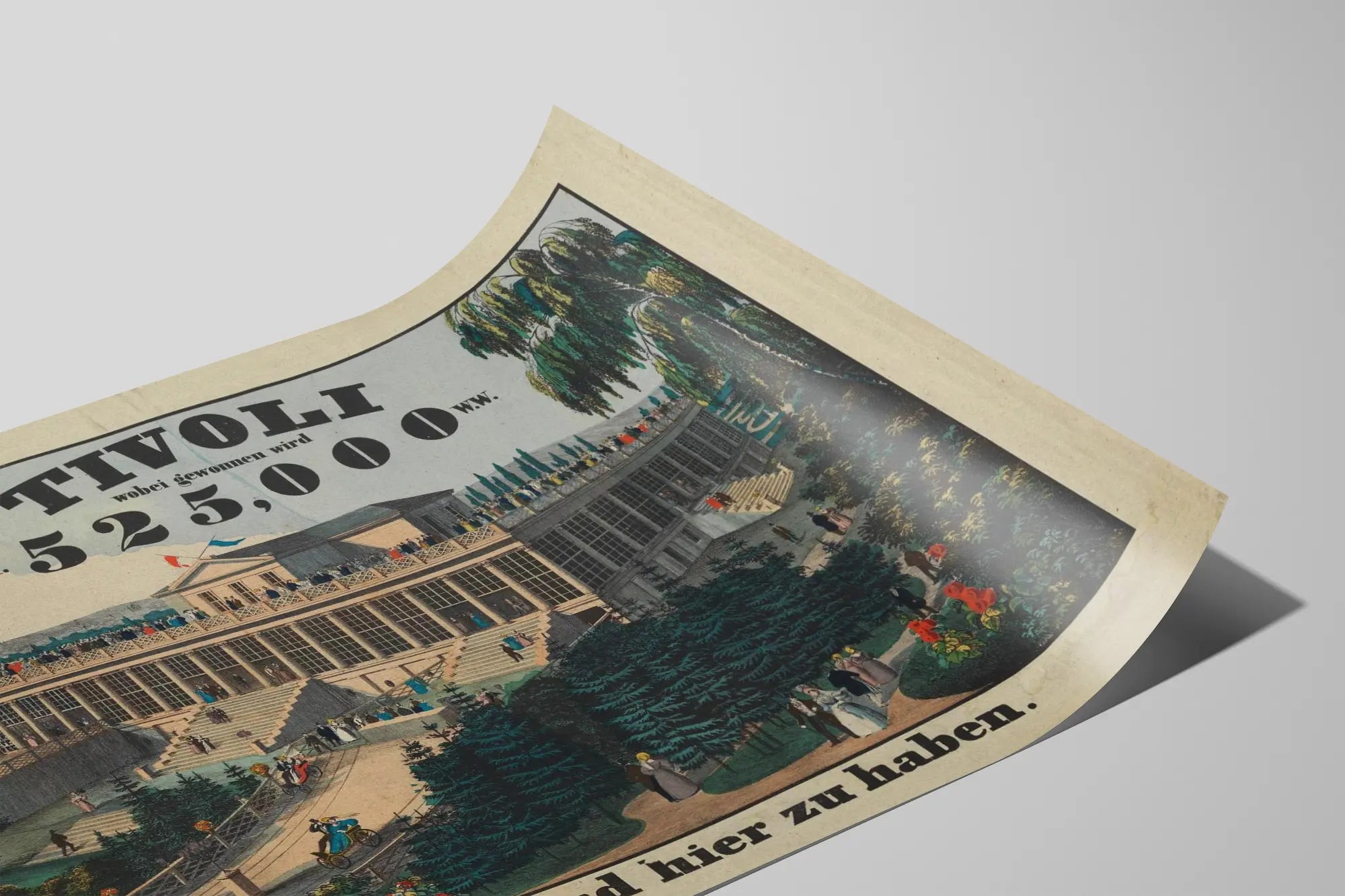 Kurz gesagt, dieses Poster „Tivoli“ stellt eine feine Mischung aus Erbe, Natur und gesellschaftlichem Leben dar und fängt einen lebendigen und eleganten historischen Moment ein. Für eine Wanddekoration, die reich an Authentizität und Charme ist, stellt es eine bemerkenswerte und originelle Wahl dar, die einen Raum in eine inspirierende und ästhetische Umgebung verwandeln kann.