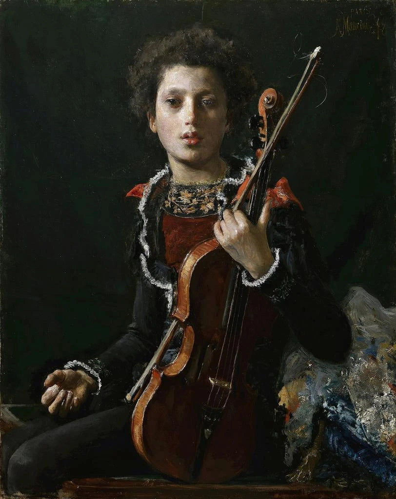 Reproduktion Akrobat mit Geige - Antonio Mancini – Fesselnde Einführung