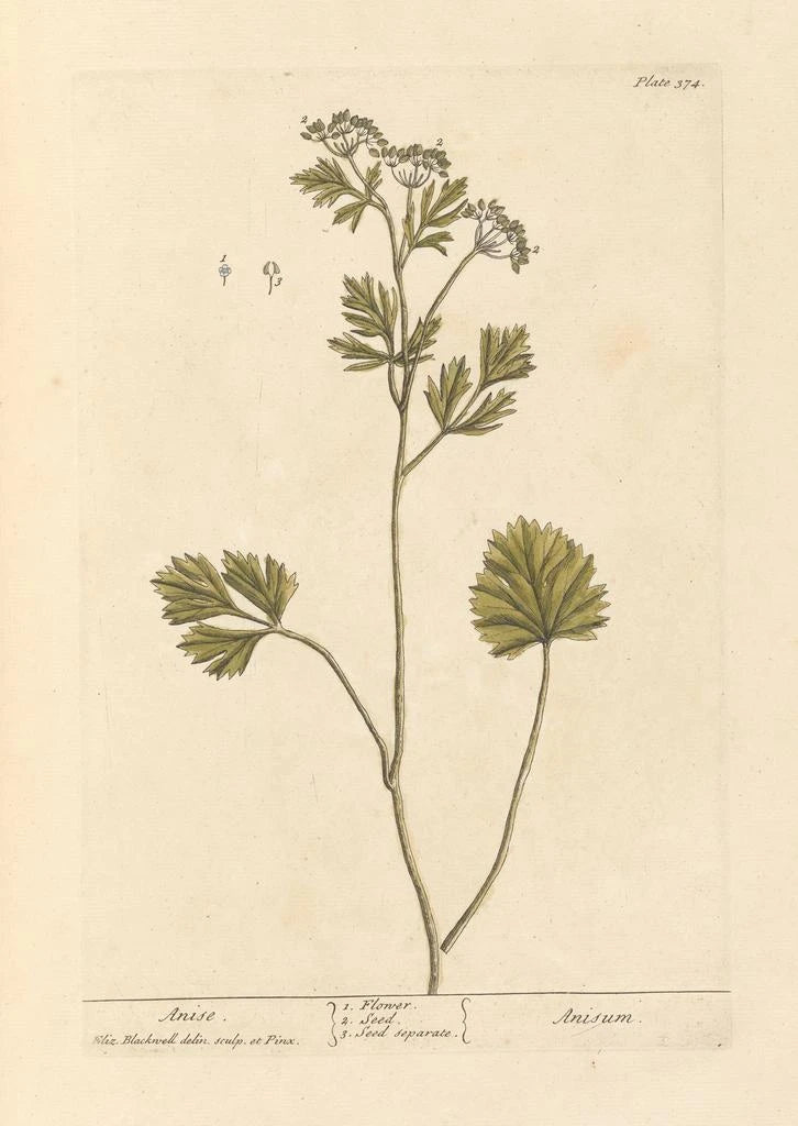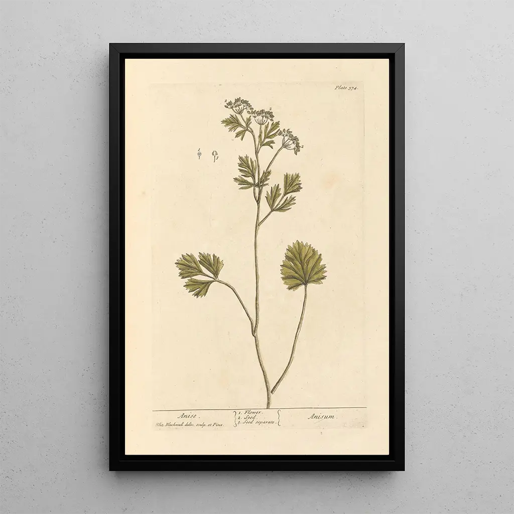 Das Anis-Leinwand von Elizabeth Blackwell ist eine fesselnde Darstellung dieser aromatischen Pflanze, bekannt für ihre medizinischen und kulinarischen Eigenschaften. Die Nuancen von Grün und Braun, kombiniert mit weißen Akzenten, schaffen eine warme und einladende Atmosphäre. Die feine Aquarelltechnik hebt die zarten Details der Blätter und Blüten hervor und vermittelt gleichzeitig eine Atmosphäre der Frische. Diese kunstdruck von Anis lädt den Betrachter zu einer sensorischen Entdeckungsreise ein, bei der die visuelle Schönheit mit den betörenden Aromen dieser Pflanze verschmilzt.