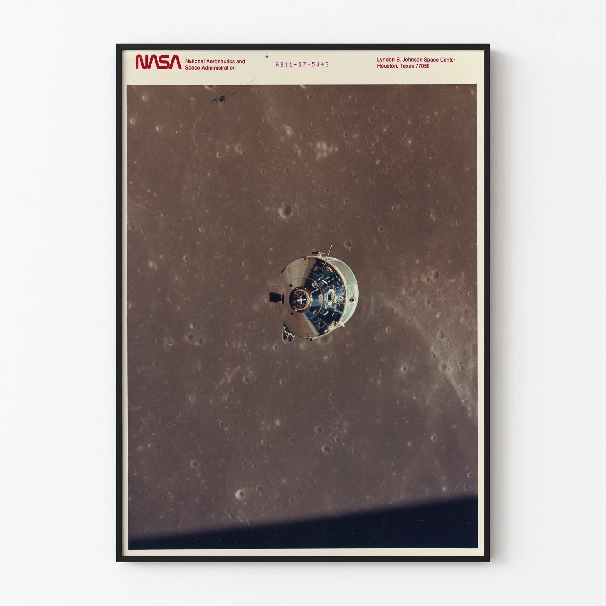 Entdecken Sie dieses einzigartige und fesselnde Plakat, das die Steuer- und Serviceeinheiten von Apollo 11 zeigt, fotografiert aus dem Mondmodul in der Umlaufbahn um den Mond. Diese Wanddekoration, die Geschichte und Raumfahrttechnologie verbindet, ist perfekt für Raumfahrt-, Wissenschafts- und Entdeckungsbegeisterte. Das ikonische Bild zeigt die präzisen Details der Einheiten vor dem kraterbedeckten Mond, was einen beeindruckenden Kontrast und eine Atmosphäre unendlichen Kosmos schafft. Dieses Poster erinnert an die berühmte Mission Apollo 11, eine der ersten menschlichen Abenteuer zu unserem natürlichen Satelliten, und markiert einen bedeutenden Meilenstein in der weltweiten Wissenschaftsgeschichte. Als Wandstück fügt es sich harmonisch in jeden Raum ein, sei es im Büro, Schlafzimmer oder Wohnzimmer, und verleiht einen Hauch von Modernität und Flucht. Diese Wanddekoration ist ideal für Liebhaber von Postern mit Weltraummotiv und verleiht Ihrem Raum einen zugleich vintage und inspirierenden Stil. Mit Sorgfalt und hoher Auflösung gedruckt, hebt dieses Plakat jedes technische Detail des Moduls und die sichtbaren Mondtexturen hervor, was seine Realitätsnähe und visuelle Wirkung verstärkt. Bringen Sie eine einzigartige Atmosphäre in Ihre Dekoration mit diesem Wandbild Apollo 11, ein unverzichtbares Stück für jede Sammlung rund um die Raumfahrt oder die NASA.