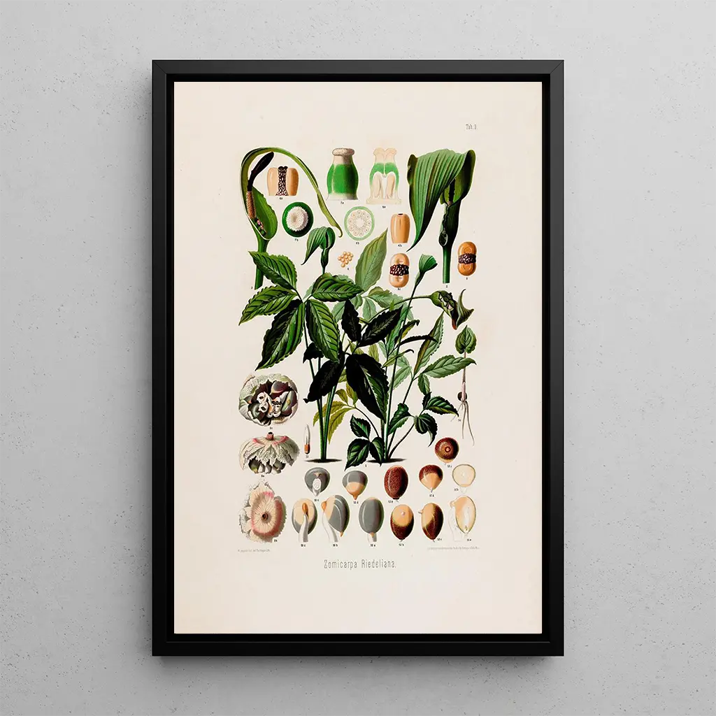 Aroideae Maximilianae Pl03 : eine Reise ins Herz der tropischen Flora Die kunstdruck Aroideae Maximilianae Pl03 ist eine faszinierende Eintauchen in die Welt der exotischen Pflanzen. Dieses Gemälde besticht durch seine detaillierten Feinheiten und seine leuchtenden Farben, die die Fülle und Vielfalt der tropischen Flora widerspiegeln. Die Nuancen von Grün, Violett und Blau verschmelzen harmonisch und schaffen eine visuell fesselnde Komposition. Der Künstler gelingt es durch seine zarte Technik, die Vitalität und Schönheit jedes Elements zu vermitteln, was dieses Werk zu einer wahren Einladung macht, die Natur zu erkunden. Jedes Blatt scheint vor Leben zu vibrieren und entführt den Betrachter in einen üppigen Garten. Heinrich Wilhelm Schott : ein Meister der botanischen Illustration Heinrich Wilhelm Schott, bekannt für seine botanischen Illustrationen im 19. Jahrhundert, spielte eine Schlüsselrolle bei der Dokumentation der Pflanzenarten. Seine Arbeit, geprägt von einem rigorosen wissenschaftlichen Ansatz, trug dazu bei, viele tropische Pflanzen einem breiten Publikum bekannt zu machen. Schott wurde durch die botanischen Expeditionen seiner Zeit beeinflusst, und sein Werk spiegelt eine Leidenschaft für die Natur und den Wunsch wider, ihre Schönheit zu teilen. Als Illustrator verstand er es, wissenschaftliche Präzision mit künstlerischer Sensibilität zu verbinden, was ihn zu einer ikonischen Figur im Bereich der botanischen Kunst machte. Eine dekorative Ergänzung mit vielfältigen Vorzügen Der kunstdruck Aroideae Maximilianae Pl03 ist eine perfekte Ergänzung für Ihre Innendekoration. Ob in einem Arbeitsbereich, einem Wohnzimmer oder Schlafzimmer, dieses Gemälde verleiht Eleganz und Ruhe. Seine Druckqualität sorgt für eine bemerkenswerte Treue zu den Details des Originalwerks und garantiert eine starke visuelle Wirkung. Mit der Wahl dieses Leinwandbildes entscheiden Sie sich nicht nur für ein Kunstwerk, sondern auch für ein Stück, das die Schönheit der Natur widerspiegelt und Ihre Umgebung in einen beruhigenden und inspirierenden Ort verwandelt.
