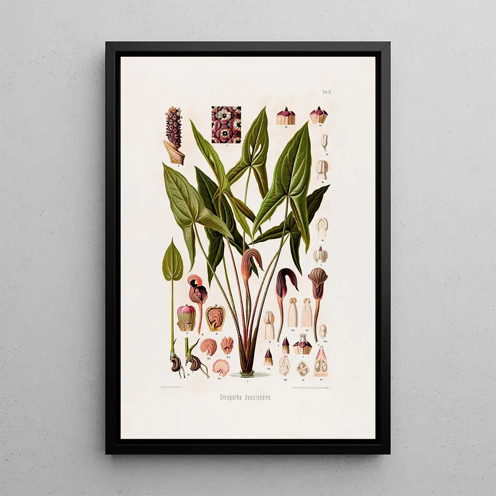 Aroideae Maximilianae Pl16 : eine Feier der Biodiversität „Aroideae Maximilianae Pl16“ von Heinrich Wilhelm Schott ist eine illustration, die den Reichtum und die Vielfalt der Pflanzen feiert. Die leuchtenden Grüntöne und Weißnuancen verschmelzen harmonisch und offenbaren die Komplexität der Formen und Texturen von Blättern und Blüten. Jedes Detail ist sorgfältig wiedergegeben und zeugt von einem aufmerksamen Blick auf die Natur. Diese kunstdruck lädt zu einer visuellen Entdeckungsreise ein, bei der man die Frische tropischer Wälder fast spüren kann. Das Werk evoziert eine tiefe Verbindung zur Pflanzenwelt und bietet eine kontemplative Erfahrung für jene, die es bewundern. Heinrich Wilhelm Schott: ein Künstler im Dienste der Wissenschaft Heinrich Wilhelm Schott, bedeutender Botaniker und Illustrator, spielte eine entscheidende Rolle bei der Dokumentation der Pflanzenarten im 19. Jahrhundert. Sein akribischer Ansatz und seine Liebe zur Natur führten dazu, Werke zu schaffen, die wissenschaftliche Präzision und künstlerische Schönheit vereinen. Schott wurde von den botanischen Expeditionen seiner Zeit beeinflusst und strebte danach, die Vielfalt der tropischen Flora zu katalogisieren und zu illustrieren. „Aroideae Maximilianae Pl16“ zeugt von seinem außergewöhnlichen Talent und seinem Engagement für die Wissenschaft, während es gleichzeitig eine einzigartige künstlerische Perspektive auf die Botanik bietet. Eine dekorative anschaffung mit vielfältigen vorteilen Der kunstdruck „Aroideae Maximilianae Pl16“ ist eine ideale Wahl für alle, die ihrer Inneneinrichtung einen Hauch Natur verleihen möchten. Ob im Wohnzimmer, im Büro oder im Schlafzimmer, diese Leinwand besticht durch ihre Druckqualität und die Treue zu den Details des Originalwerks. Ihre elegante Ästhetik und die beruhigende Farbpalette machen sie zu einem attraktiven Dekorationselement. Durch die Integration dieses kunstdrucks in Ihren Raum schaffen Sie eine warme und inspirierende Atmosphäre und feiern gleichzeitig die Schönheit der Biodiversität.