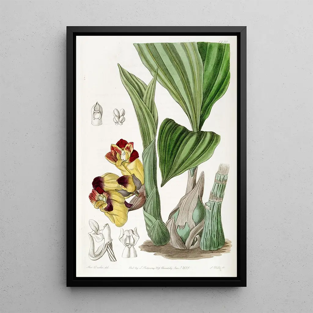 Die kunstdruck des BarrelOrchis bicolore ist eine Feier der Seltenheit und Eleganz. Seine Blüten, mit kontrastierenden Gelb- und Violetttönen, erheben sich stolz und ziehen den Blick durch ihre einzigartige Schönheit auf sich. Die Illustrationstechnik von Sydenham Edwards hebt jedes Detail hervor, von den zarten Nerven der Blütenblätter bis zu den anmutigen Formen der Blätter. Dieses Gemälde evoziert eine lebendige natürliche Welt, in der jedes Element eine Geschichte zu erzählen scheint und den Betrachter einlädt, sich an der Vielfalt der Flora zu erfreuen.