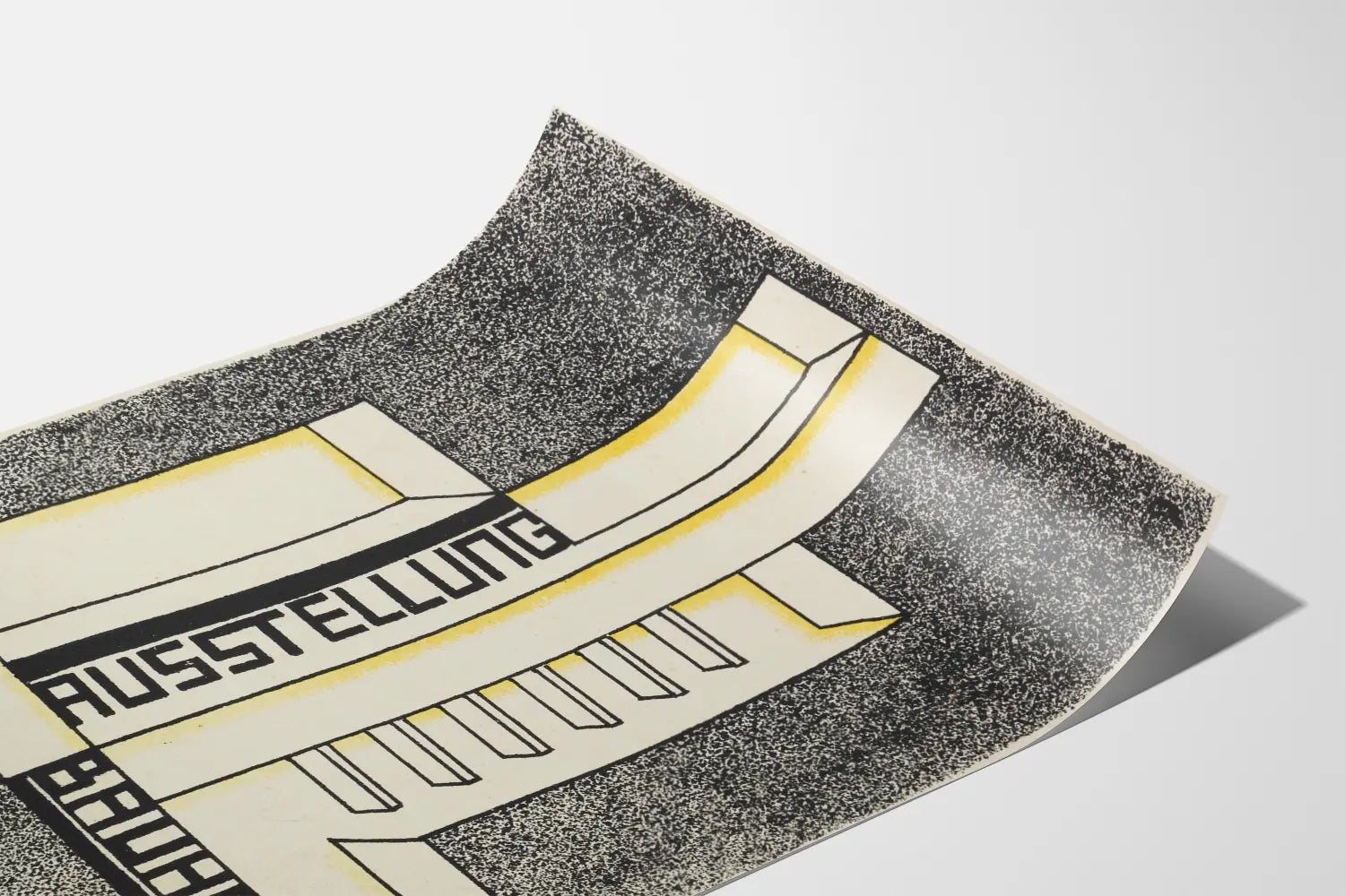 Dieses Bauhaus-Weimar-1923-Poster ist ein bemerkenswertes Beispiel für grafische Kunst und Wanddekoration, inspiriert von der Bauhaus-Bewegung, die Einfachheit, Geometrie und funktionale Ästhetik vereint. Es zeigt stilisierte architektonische Formen und fängt den Geist des Bauhauses mit klaren Linien und starken Kontrasten zwischen Schwarz und hellem Gelb auf strukturiertem Hintergrund ein. Sein minimalistisches und strukturiertes Design macht es zu einem unverzichtbaren Element für moderne Wandgestaltung, besonders geeignet für minimalistische Innenräume oder kreative Arbeitsbereiche. Das Poster erinnert an die Bauhaus-Ausstellung in Weimar im Jahr 1923, einen Schlüsselmoment für diese künstlerische und architektonische Bewegung, die das Design und die Gestaltung des 20. Jahrhunderts maßgeblich beeinflusst hat. Dieses dekorative Poster ist ideal, um einen Hauch von Designgeschichte und eine avantgardistische Atmosphäre in Ihre Einrichtung zu bringen. Sein lineares grafisches Stil und die perspektivischen architektonischen Formen verleihen eine visuelle Tiefe, die dieses Element zu einem faszinierenden Wandkunstwerk macht. Dieses Wandbild, obwohl in Form eines Posters, kann gerahmt werden, um eine elegantere Präsentation zu erzielen. Es ist die perfekte Wahl für Liebhaber von Designgeschichte, dekorativer Kunst und Bauhaus-Stil und bietet ein Wanddekorationselement, das sowohl vintage als auch zeitlos ist. Integrieren Sie dieses Bauhaus-Poster in Ihre Wandgestaltung, um Ihre Räume mit einem Stück zu bereichern, das die Modernität und die Strenge des industriellen und künstlerischen Designs jener Zeit verkörpert.