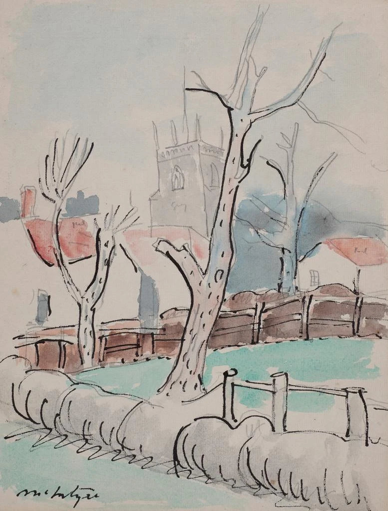 Bäume und Kirchturm der Kirche - Raymond McIntyre