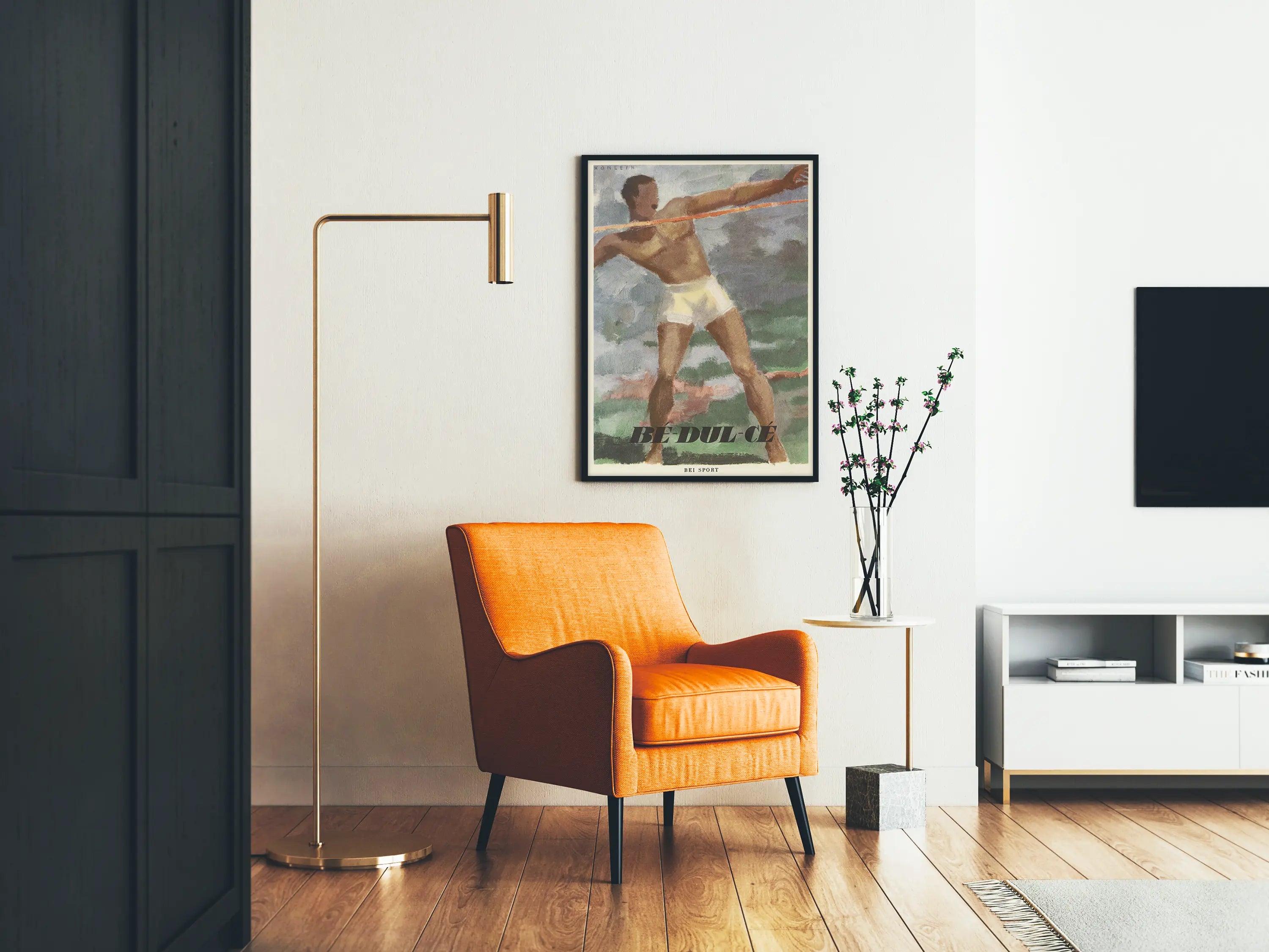 Diese Wanddekoration ist ideal für Sportliebhaber und Retro-Design-Fans, die ihrer Einrichtung eine Atmosphäre von Vitalität und Eleganz verleihen möchten. Dieses Poster verkörpert perfekt den Geist des Sports, der unter dem Zeichen der kontrollierten Kraft und Konzentration steht, mit einer ausgewogenen Komposition, die den Blick auf natürliche Weise anzieht.