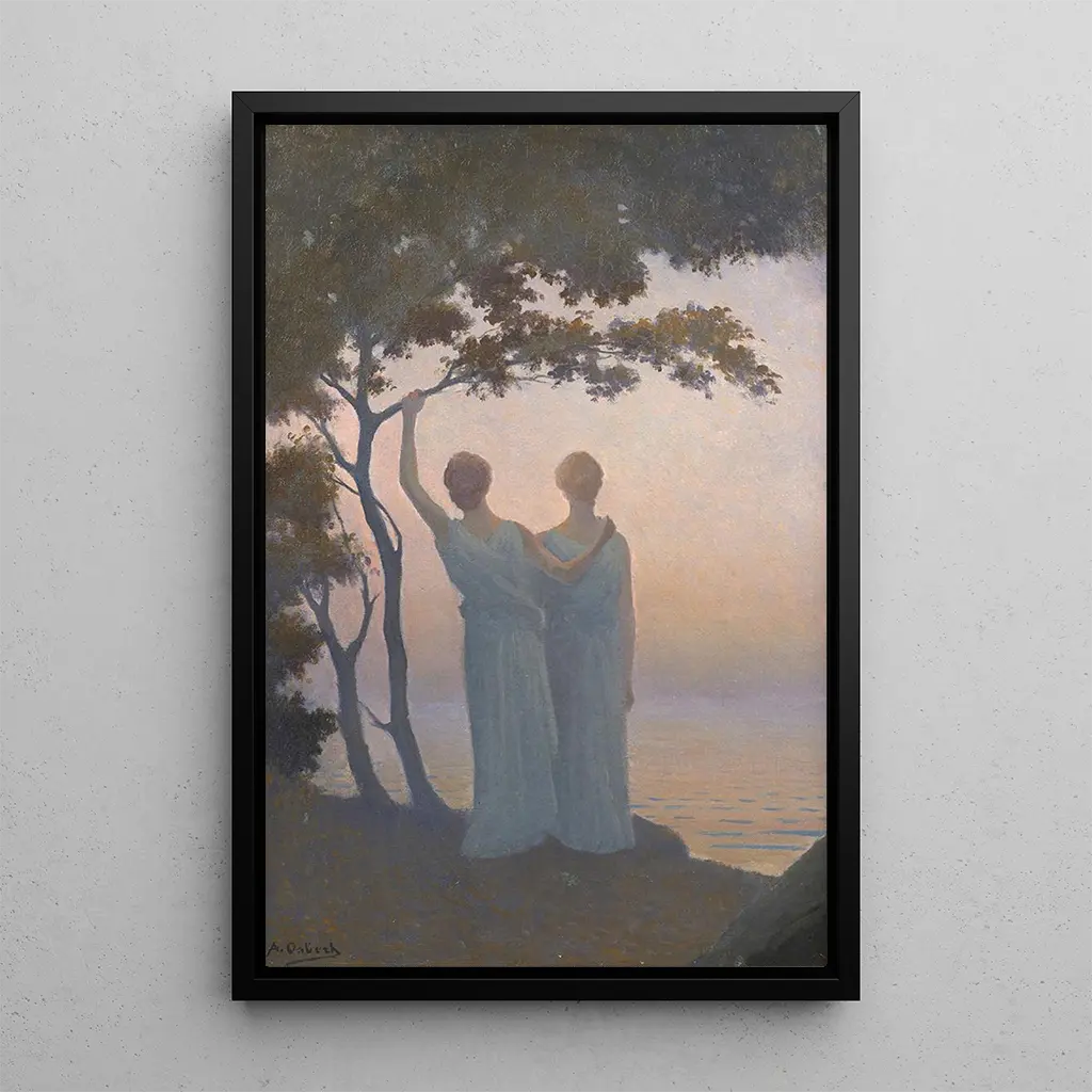 Contemplation : eine Vertiefung in die Gelassenheit Die kunstdruck von Contemplation von Alphonse Osbert entführt uns in ein Universum der Ruhe und Reflexion. Dieses Werk zeichnet sich durch seine sanften Farbtöne und zarten Nuancen aus, die eine beruhigende Atmosphäre schaffen. Die Technik des Künstlers, der das Hell-Dunkel-Spiel subtil verbindet, erweckt ätherische, fast schwebende Formen zum Leben. Die Figuren, in ihre Gedanken versunken, scheinen mit der umgebenden Natur zu dialogisieren und laden den Betrachter zu einer tiefen Selbstreflexion ein. Jeder Pinselstrich vermittelt ein Gefühl von Frieden und macht dieses Gemälde zu einer wahren Oase der Ruhe. Alphonse Osbert : ein Meister des Symbolismus Alphonse Osbert, eine bedeutende Figur des französischen Symbolismus, hat die Essenz der menschlichen Seele durch seine Werke eingefangen. Geboren 1857, wurde er von künstlerischen Bewegungen wie der Romantik und dem Impressionismus beeinflusst, entwickelte jedoch einen einzigartigen Stil, der ihm eigen ist. Osbert hat häufig die Themen Natur und Spiritualität erforscht und versucht, tiefe Emotionen durch seine Kompositionen auszudrücken. Seine Arbeit markierte das Ende des 19. Jahrhunderts und den Anfang des 20. Jahrhunderts, eine Zeit, in der sich die Kunst neu erfindet und für neue Interpretationen öffnet. Die kunstdruck von Contemplation zeugt von seinem Talent, atmosphärische Eindrücke zu schaffen. Eine dekorative Anschaffung mit vielfältigen Vorteilen Die Entscheidung für die kunstdruck von Contemplation bedeutet, ein dekoratives Stück zu wählen, das Ihr Interieur bereichert. Ob im Wohnzimmer, im Büro oder im Schlafzimmer, dieses Bild bringt eine Note von Gelassenheit und Eleganz. Die Qualität des kunstdrucks garantiert eine detailgetreue Wiedergabe des Originals, sodass Sie die Ästhetik von Osbert voll genießen können. Mit seinen beruhigenden Farben und seiner kontemplativen Atmosphäre fügt sich dieses Leinwandbild harmonisch in verschiedene Einrichtungsstile ein und wird gleichzeitig zum Gesprächspunkt. Gönnen Sie sich einen Moment des Friedens und der Schönheit mit diesem zeitlosen Kunstwerk.