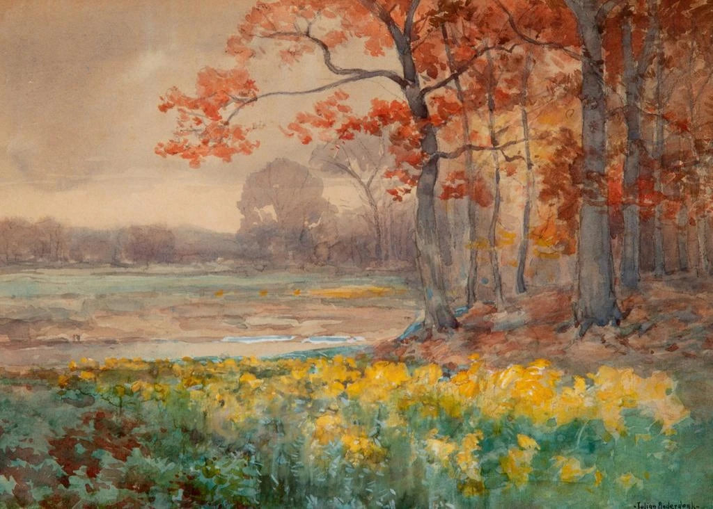 Blumen in Gelb an einem grauen Tag: eine leuchtende Melancholie In "Blumen in Gelb an einem grauen Tag" fängt Julian Onderdonk die vergängliche Schönheit der Blumen ein und setzt ihren Glanz in Kontrast zum bewölkten Himmel. Dieses Werk vermittelt eine Atmosphäre sanfter Melancholie, in der die lebhaften Gelbtöne der Blumen das Bild erleuchten und einen eindrucksvollen Dialog mit dem dunklen Hintergrund schaffen. Die Technik des Künstlers, die Realismus und Impressionismus verbindet, ermöglicht es, die Textur der Blütenblätter und die Leichtigkeit der Stängel zu spüren. Jeder Pinselstrich scheint das Leben atmen zu lassen und erinnert gleichzeitig an die Zerbrechlichkeit der Natur, ein Thema, das Onderdonk sehr am Herzen liegt. Julian Onderdonk: ein Dichter der Natur Julian Onderdonk, aktiv im frühen 20. Jahrhundert, ist bekannt für seine Landschaften und Stillleben, die oft von der texanischen Flora inspiriert sind. In einem künstlerischen Umfeld aufgewachsen, wurde er von seinen impressionistischen Zeitgenossen beeinflusst, entwickelte jedoch einen einzigartigen Stil, der ihm eigen ist. Seine Werke, wie "Blumen in Gelb an einem grauen Tag", zeugen von seiner Liebe zur Natur und seinem Wunsch, flüchtige Momente der Schönheit einzufangen. Onderdonk verstand es, Licht und Farbe zu vereinen, um Kompositionen zu schaffen, die tiefe Emotionen hervorrufen, und wurde so zu einer bedeutenden Figur der amerikanischen Kunst. Eine dekorative kunstdruck mit vielfältigen Vorzügen Der kunstdruck von "Blumen in Gelb an einem grauen Tag" von Julian Onderdonk ist eine ideale dekorative Wahl, um Ihr Zuhause zu bereichern, sei es im Wohnzimmer, Büro oder Schlafzimmer. Seine Druckqualität ermöglicht es, die lebendige Farbpalette des Künstlers zu würdigen und gleichzeitig eine warme, lichtdurchflutete Atmosphäre zu schaffen. Dieses Bild ist nicht nur ein dekoratives Element, sondern lädt zur Betrachtung und Flucht ein und verwandelt Ihre Umgebung in eine Oase des Friedens und der Schönheit. Ein Leinwandbild, das Kunstliebhaber und Naturliebhaber gleichermaßen begeistern wird und Ihrer Dekoration eine poetische Note verleiht.