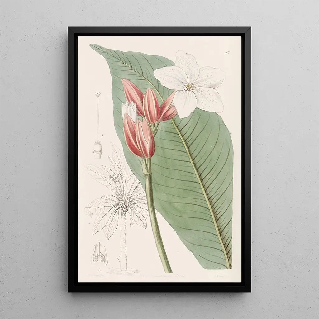Das Kunstdruck Rouge-brésilien von Sydenham Edwards ist eine wahre Feier der Natur, bei der die lebendigen Töne von Rot und Grün sich miteinander verweben, um eine Atmosphäre zu schaffen, die sowohl dynamisch als auch beruhigend ist. Dieses Werk, mit einer sorgfältigen Technik gefertigt, hebt die Schönheit exotischer Pflanzen hervor und fängt deren Wesen mit bemerkenswerter Präzision ein. Die detaillierten Feinheiten der Blätter und Blumen vermitteln ein Gefühl von Frische und entführen den Betrachter in einen üppigen Garten. Das Licht spielt eine entscheidende Rolle, indem es die Nuancen und Schatten betont und zu einer längeren Betrachtung dieser botanischen Szene einlädt.