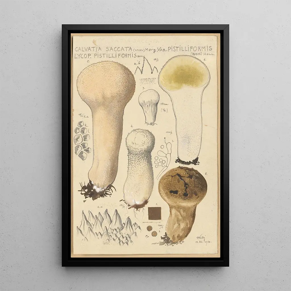 Der kunstdruck von Calvatia saccata var Pistilliformis ist eine ideale Ergänzung für Ihre Innendekoration, sei es im Wohnzimmer, Büro oder Schlafzimmer. Seine Druckqualität und die Treue zu den Details machen ihn zu einem fesselnden Kunstwerk, das den Blick auf sich zieht. Mit seinen sanften, natürlichen Farben bringt dieses Gemälde eine Note von Gelassenheit und Harmonie in Ihren Raum. Durch die Integration in Ihre Dekoration schaffen Sie eine warme und einladende Atmosphäre und feiern gleichzeitig die Schönheit der Natur. Ein Werk, das Kunstliebhaber und Botaniker gleichermaßen begeistern wird und Ihre tägliche Umgebung bereichert.