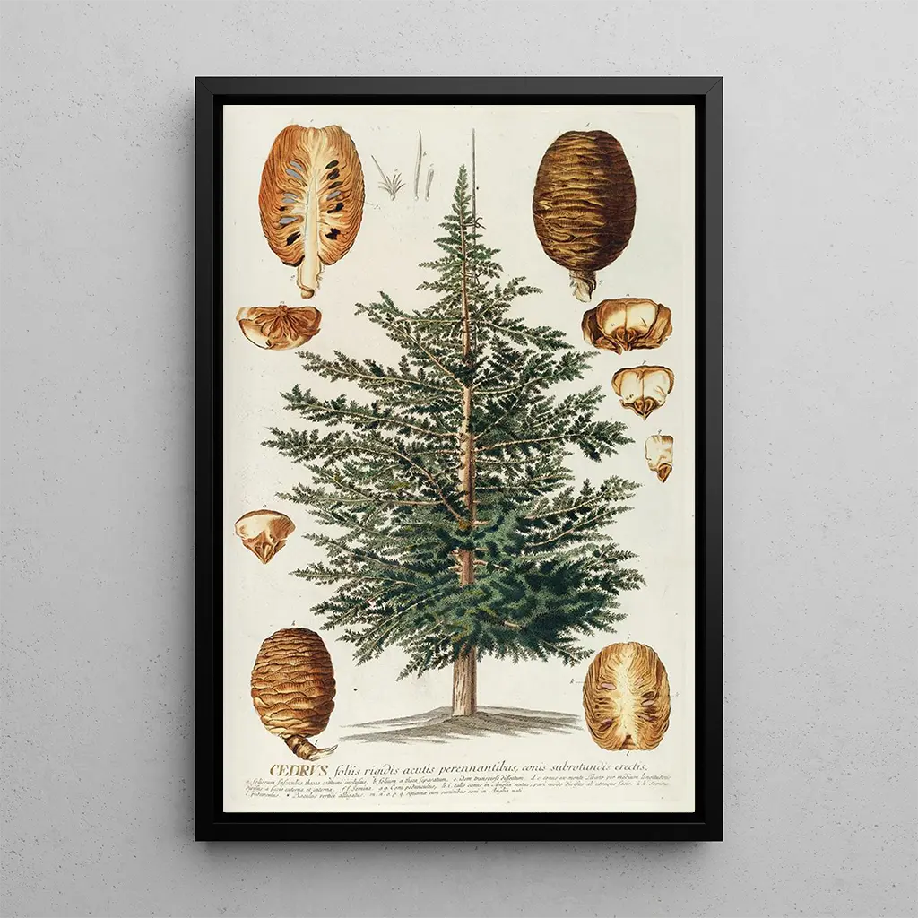 Cèdre III : eine Ode an die Majestät der Natur Das Gemälde Cèdre III von Georg Dionysius Ehret ist eine visuelle Feier der Pracht der Bäume. Mit detaillierten Feinheiten hebt das Werk die reiche Textur der Rinde und die Zartheit der Blätter hervor und schafft eine Atmosphäre der Gelassenheit und Kontemplation. Die Farben, die von tiefem Grün bis zu erdigen Brauntönen reichen, rufen eine intime Verbindung mit der Natur hervor. Die Aquarelltechnik, die von Ehret meisterhaft eingesetzt wird, ermöglicht es, Licht und Schatten einzufangen und verleiht dieser botanischen Darstellung eine fast lebendige Dimension. Dieses Gemälde lädt den Betrachter ein, innezuhalten und die Schönheit der Zedern zu schätzen, Symbole für Stärke und Langlebigkeit. Georg Dionysius Ehret : ein Pionier der botanischen Kunst Georg Dionysius Ehret, im 18. Jahrhundert aktiv, gilt als einer der einflussreichsten botanischen Künstler seiner Zeit. Geboren in Deutschland, wurde er stark vom Naturwissenschaftsbewegung beeinflusst und suchte, Kunst und Wissenschaft durch seine Werke zu verbinden. Seine Karriere war geprägt von Zusammenarbeit mit renommierten Botanikern, was ihm ermöglichte, präzise und ästhetische Illustrationen verschiedener Pflanzen zu erstellen. Ehret spielte eine Schlüsselrolle in der Entwicklung der botanischen Illustration, indem er eine künstlerische Sensibilität einbrachte, die der Schönheit der Flora huldigte. Sein Werk, zu dem auch Cèdre III gehört, zeugt von der Bedeutung der Natur in Kunst und Wissenschaft seiner Zeit. Eine dekorative Anschaffung mit vielfältigen Vorzügen Der kunstdruck des Gemäldes Cèdre III ist eine ideale dekorative Wahl für verschiedene Räume, sei es im Wohnzimmer, Büro oder Schlafzimmer. Seine Druckqualität garantiert eine bemerkenswerte Treue zu den Originaldetails, sodass man die Schönheit des Werks voll genießen kann. Die ästhetische Anziehungskraft dieses Leinwandbildes liegt in seiner Fähigkeit, einen Hauch von Natur in Ihr Zuhause zu bringen und gleichzeitig eine beruhigende Atmosphäre zu fördern. Durch die Integration dieses Bildes in Ihre Dekoration verleihen Sie Ihrem Raum eine Note von Eleganz und Raffinesse und feiern gleichzeitig die Harmonie zwischen Kunst und Natur.