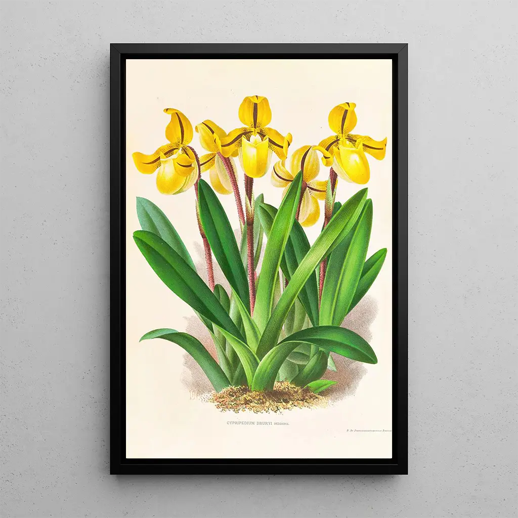 Cypripedium Druryi : eine florale Tanz unter dem Blick der Natur Das Gemälde "Cypripedium Druryi" von Jean Jules Linden fängt die Essenz der natürlichen Schönheit durch eine zarte und lebendige Komposition ein. Die leuchtenden Farben der Blumen, die Nuancen von Gelb und Violett vermischen, erzeugen eine Atmosphäre von Frische und Leichtigkeit. Die Technik von Linden, die botanische Präzision mit künstlerischer Sensibilität verbindet, lässt fast den Duft der Blumen spüren. Jedes Petal scheint zum Leben zu erwachen und lädt den Betrachter zu einer stillen und respektvollen Betrachtung der Natur ein. Dieses Werk ist viel mehr als eine einfache Darstellung; es ist eine Ode an die vergängliche Schönheit der Orchideen. Jean Jules Linden : ein Pionier der künstlerischen Botanik Jean Jules Linden, geboren 1817, gilt als einer der großen Künstler der Botanik des 19. Jahrhunderts. Ursprünglich aus Belgien stammend, vereinte er seine Liebe zur Natur mit seinem künstlerischen Talent und schuf Werke, die sowohl wissenschaftlich als auch ästhetisch sind. Beeinflusst von den botanischen Expeditionen seiner Zeit, reiste Linden um die Welt, sammelte Exemplare und stellte sie mit bemerkenswerter Genauigkeit dar. Seine Arbeit war wesentlich für die Dokumentation der Pflanzenarten, und er trug zum Aufstieg der Blumenkunst als eigenständiges Genre bei. "Cypripedium Druryi" ist ein perfektes Beispiel für sein Erbe, das Fachwissen und Leidenschaft vereint. Eine dekorative Anschaffung mit vielfältigen Vorteilen Der kunstdruck von "Cypripedium Druryi" ist ein dekoratives Stück, das sich ideal eignet, um verschiedene Räume zu verschönern, sei es ein Wohnzimmer, ein Büro oder ein Schlafzimmer. Die Druckqualität garantiert eine Treue zu den Farben und Details des Originalwerks, sodass Sie die visuelle Fülle dieser Kreation voll genießen können. Durch die Integration dieses Leinwandbildes in Ihr Zuhause bringen Sie einen Hauch von Natur und Eleganz hinein und regen gleichzeitig Gespräche über Kunst und Botanik an. Dieses Gemälde, mit seinem unbestreitbaren ästhetischen Reiz, wird Kunst- und Blumenliebhaber begeistern und jeden Blick zu einem Moment der Betrachtung machen.