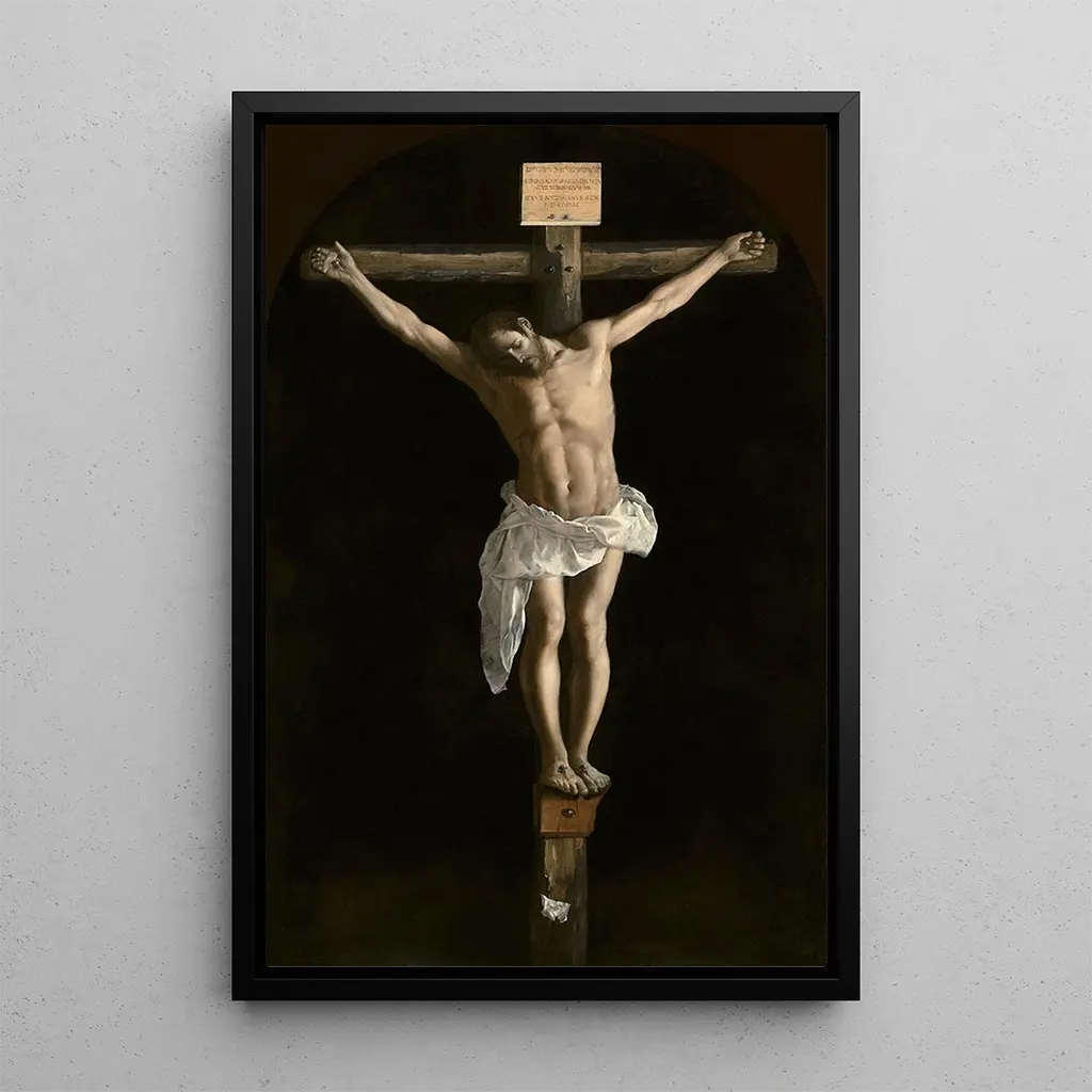 La Crucifixion : eine Szene intensiver Andacht Die Crucifixion von Francisco de Zurbarán ist ein Werk, das die Essenz von Leiden und Erlösung einfängt. Mit dunklen Farben und Schattenwürfen schafft der Künstler eine Atmosphäre von Ernsthaftigkeit und Gelassenheit. Die Komposition konzentriert sich auf die Figur des Christus, dessen Körper mit beeindruckender anatomischer Präzision dargestellt ist. Die Details der Gewandfalten und das Licht, das von seinem Gesicht ausgeht, zeugen von einer bemerkenswerten technischen Meisterschaft. Dieses Gemälde lädt den Betrachter zu einer tiefen, sowohl spirituellen als auch emotionalen Betrachtung ein und ruft Gefühle von Mitgefühl und Respekt hervor. Francisco de Zurbarán : ein Meister des spanischen Barock Francisco de Zurbarán, aktiv im 17. Jahrhundert, ist einer der großen Meister des spanischen Barock. Beeinflusst vom Caravaggio, zeichnet er sich durch seine dramatische Nutzung von Licht und Schatten sowie durch seine Neigung zu religiösen Themen aus. Sein Werk, oft fokussiert auf heilige Figuren und Szenen aus dem Leben Christi, spiegelt eine tiefe Spiritualität und ein Engagement für den katholischen Glauben wider. Die Kreuzigung, emblematisch für seinen Stil, veranschaulicht perfekt die Bedeutung religiöser Kunst in dieser Zeit und dient dazu, die Andacht der Gläubigen im Kontext der Gegenreformation zu stärken. Eine dekorative Anschaffung mit vielfältigen Vorzügen Der kunstdruck der Crucifixion ist ein dekoratives Stück, das sowohl im Wohnzimmer als auch im Büro oder Schlafzimmer seinen Platz findet. Seine Druckqualität und seine Treue zu den Originalfarben machen ihn zur idealen Wahl für alle, die ihr Interieur mit einem künstlerischen Akzent bereichern möchten. Dieses Gemälde zieht den Blick auf sich und regt Gespräche an, während es eine Atmosphäre von Gelassenheit und Nachdenklichkeit schafft. Durch die Integration dieses Bildes in Ihre Dekoration verleihen Sie Ihrem Raum eine spirituelle und ästhetische Dimension und würdigen gleichzeitig das künstlerische Erbe von Zurbarán.