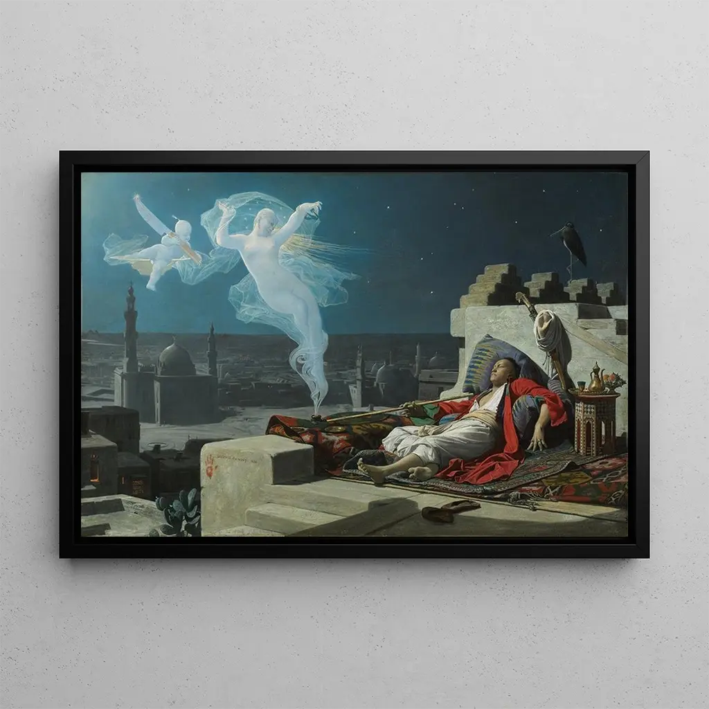 Der kunstdruck des Traums eines Eunuchen entführt uns in eine traumhafte Welt, in der Emotionen und Wünsche mit der Realität verschmelzen. Jean Lecomte du Nouÿ, mit seiner reichen Farbpalette und seinen minutösen Details, gelingt es, die Essenz der menschlichen Seele einzufangen, die zwischen Traum und Enttäuschung oszilliert. Die warmen Farben und die zarten Texturen dieses Gemäldes erzeugen eine Atmosphäre, die sowohl intim als auch verstörend ist, in der jede Figur eine emotionale Last zu tragen scheint. Dieses Werk lädt zu einer Reflexion über die menschliche Bedingung, unerfüllte Wünsche und verlorene Träume ein, während es gleichzeitig eine fesselnde Ästhetik bietet. Jean Lecomte du Nouÿ: ein Künstler im Herzen sozialer Spannungen Jean Lecomte du Nouÿ, aktiv im 19. Jahrhundert, ist ein französischer maler, dessen Arbeit im akademischen Bewegung verankert ist. Beeinflusst von symbolistischen und realistischen Strömungen, verstand er es, komplexe Themen wie Liebe, Einsamkeit und die Suche nach Identität anzugehen. Seine Ausbildung an der École des beaux-arts in Paris und seine Reisen nach Orient bereicherten sein künstlerisches Repertoire. Der Traumbild eines Eunuchen, emblematisch für seinen Stil, illustriert die sozialen Spannungen und die unterdrückten Wünsche seiner Zeit und macht ihn zu einem kritischen Beobachter der Gesellschaft. Eine dekorative anschaffung mit vielfältigen vorteilen Der kunstdruck des Traums eines Eunuchen ist ein dekoratives Stück, das Ihr Interieur bereichern wird, sei es im Wohnzimmer, im Büro oder im Schlafzimmer. Seine Druckqualität und seine Liebe zum Detail machen es zu einem fesselnden Werk, das das Auge anzieht und Interesse weckt. Mit seiner suggestiven Atmosphäre bringt dieses Gemälde einen Hauch von Raffinesse und Reflexion in Ihre Dekoration. Durch die Integration dieses Werks in Ihren Raum schaffen Sie eine inspirierende Umgebung, die zur Kontemplation und Flucht einlädt.