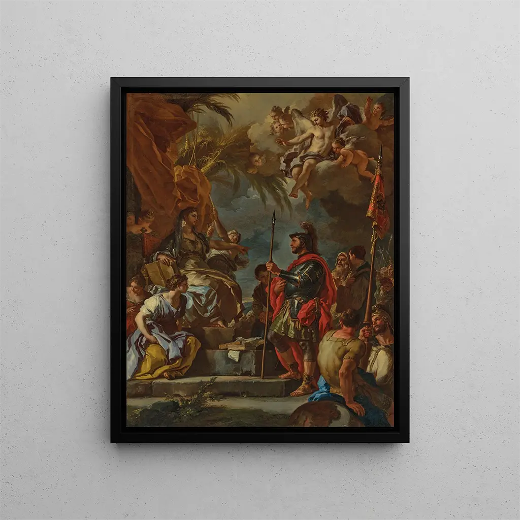 Francesco Solimena, geboren 1657 in Canosa di Puglia, ist einer der bedeutendsten Vertreter des neapolitanischen Barock. Sein Werk ist geprägt von dem Wunsch, Geschichten durch dynamische Kompositionen und expressive Figuren zu erzählen. Solimena hat sich in der Kunstlandschaft seiner Zeit durchgesetzt, viele zeitgenössische und zukünftige Künstler beeinflusst. Seine Fähigkeit, klassische Elemente mit stilistischen Innovationen zu verbinden, machte ihn zu einem Pionier bei der Interpretation religiöser und mythologischer Themen. Seine Karriere, geprägt von Erfolg, zeugt von einem tiefen Engagement für Kunst und Kultur, mit
