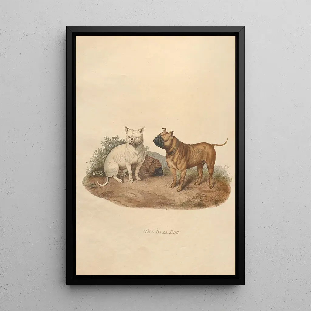 Der Bulldog, ein faszinierendes Werk von Sydenham Edwards, fängt die Essenz dieses charakterstarken Hundes ein. Mit seinen markanten Zügen und seinem lebhaften Ausdruck strahlt diese kunstdruck eine einzigartige Persönlichkeit aus, die sofort die Aufmerksamkeit auf sich zieht. Die warmen Farben und die detaillierten Feinheiten, ausgeführt mit einer raffinierten Aquarelltechnik, erwecken diesen treuen Begleiter zum Leben. Die Atmosphäre, die von dieser Leinwand ausgeht, ist sowohl warmherzig als auch einladend und lädt den Betrachter ein, sich mit diesem Tierporträt zu verbinden. Jeder Pinselstrich scheint eine Geschichte zu erzählen, die eines Tieres, das zugleich zärtlich und unerschrocken ist.