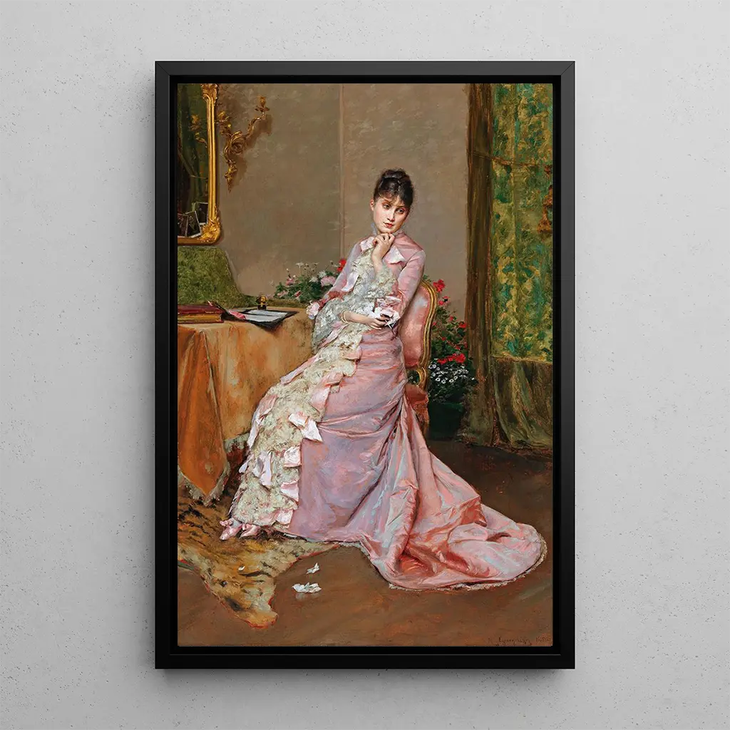 In "La Lettre" taucht Rogelio de Egusquiza in eine Atmosphäre voller Melancholie ein. Die Komposition zeigt eine elegante Frau, gekleidet in ein zartes Kleid, die einen Brief in den Händen hält. Die warmen Farben und die Schattenwürfe schaffen eine intime, fast nostalgische Stimmung. Die malerische Technik des Künstlers, die Realismus und impressionistische Akzente verbindet, erweckt jedes Detail zum Leben, von den Falten des Stoffes bis zu den Reflexionen in den Augen der Protagonistin. Dieses Gemälde lädt zur Betrachtung ein und regt die Fantasie des Betrachters an, den Inhalt dieses geheimnisvollen Briefes zu ergründen.
