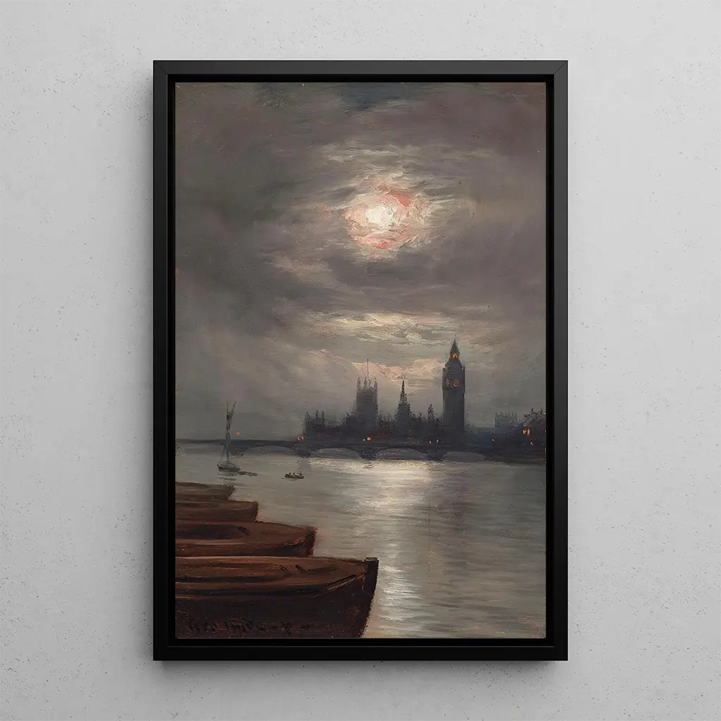 La rivière au clair de lune : eine nächtliche Szene voller Gelassenheit Der kunstdruck von "La rivière au clair de lune" lädt zu einem nächtlichen Spaziergang am Wasser ein. Die silbernen Reflexionen des Mondes tanzen auf der ruhigen Oberfläche des Flusses und schaffen eine Atmosphäre von Frieden und Geheimnis. Die sanften Farben, die von tiefem Blau bis zu silbrigen Nuancen reichen, vermitteln eine fast greifbare Ruhe. Die Ölfarbentechnik, die von Pownall verwendet wird, ermöglicht es, das Licht subtil einzufangen und die Details der Bäume und Ufer zu betonen. Dieses Gemälde, durch seine ruhige Stimmung, versetzt den Betrachter in einen schwebenden Moment, fernab vom Trubel des Alltags. George Hyde Pownall : ein Meister der romantischen Landschaft George Hyde Pownall, aktiv im 19. Jahrhundert, ist bekannt für seine Landschaften, die die Schönheit der Natur durch eine romantische Linse einfangen. Beeinflusst von den künstlerischen Bewegungen seiner Zeit, hat er es verstanden, Elemente der englischen Malerei zu integrieren und gleichzeitig Themen von Licht und Farbe zu erforschen. Pownall wurde oft durch seine Reisen durch die englische Landschaft inspiriert, wobei er versuchte, Szenen zu verewigen, die tiefe Emotionen hervorrufen. Sein Werk, obwohl weniger bekannt als das einiger seiner Zeitgenossen, bleibt ein wertvoller Beweis für die Entwicklung der romantischen Landschaft. Eine dekorative Anschaffung mit vielfältigen Vorzügen Der kunstdruck von "La rivière au clair de lune" ist eine ideale dekorative Ergänzung für verschiedene Räume, sei es im Wohnzimmer, Büro oder Schlafzimmer. Seine beruhigende Farbpalette und seine kontemplative Atmosphäre machen ihn zur perfekten Wahl, um eine entspannende Stimmung zu schaffen. Die Qualität des kunstdrucks garantiert eine Treue zu den ursprünglichen Details, sodass man das Werk ohne Kompromisse voll genießen kann. Mit seinem unbestreitbaren ästhetischen Reiz wird dieses Leinwandbild Kunstliebhaber und Neulinge gleichermaßen begeistern und jedem Raum eine Note von Gelassenheit verleihen.