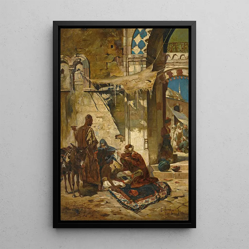 Ferenc Eisenhut, peintre hongrois actif à la fin du XIXe siècle, est connu pour ses œuvres qui capturent l'essence des cultures orientales. Influencé par ses voyages au Moyen-Orient, il a su intégrer des éléments de la vie quotidienne et des traditions locales dans ses créations. Son style, souvent associé au réalisme, se distingue par une attention minutieuse aux détails et une palette de couleurs vibrantes. Eisenhut a joué un rôle important dans la diffusion de la culture orientale en Europe, offrant un regard unique sur des sujets souvent méconnus à son époque. "Le Guérisseur de Beyrouth" est un parfait exemple de cette fusion entre l'art et l'ethnographie.