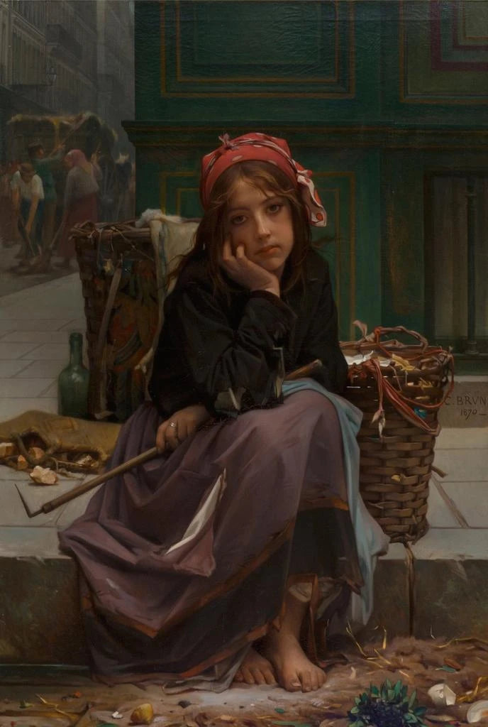 Guillaume Charles Brun, eine bedeutende Figur des 19. Jahrhunderts, gehört zu den realistischen Künstlern, die das Leben so darstellen wollen, wie es ist. Beeinflusst von den sozialen und wirtschaftlichen Veränderungen seiner Zeit, interessiert er sich besonders für die Arbeiterklassen und ihre Kämpfe. Seine Werke, darunter "Der junge Verkäufer von Stoffen", spiegeln eine tiefe Menschlichkeit wider und den Wunsch, den oft Unsichtbaren eine Stimme zu geben. Durch seine Kunst trägt Brun zu einem sozialen Bewusstsein bei und ist somit eine wichtige Persönlichkeit seiner Epoche.