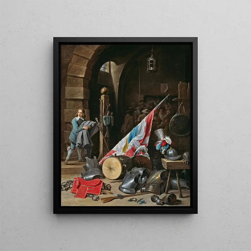 Reproduktion Der Wachposten - David Teniers der Jüngere – Fesselnde Einführung In der reichen und komplexen Welt der Kunstgeschichte heben sich bestimmte Werke durch ihre Fähigkeit hervor, das Wesen des Alltags einzufangen und gleichzeitig über die Natur des Menschen nachzudenken. "Der Wachposten" von David Teniers der Jüngere ist eines dieser meisterhaften Stücke. Dieses Gemälde, das eine Szene aus dem militärischen Leben im 17. Jahrhundert darstellt, lädt den Betrachter ein, in eine Welt einzutauchen, in der Humor und Kameradschaft mit der Strenge der militärischen Disziplin verschmelzen. Teniers' geschickte Komposition, kombiniert mit seiner Meisterschaft in Farben und Texturen, schafft eine lebendige und immersive Atmosphäre, die zur Erforschung menschlicher Interaktionen einlädt. Stil und Einzigartigkeit des Werks Der Stil von David Teniers der Jüngere zeichnet sich durch eine akribische Detailgenauigkeit und eine lebendige Farbpalette aus, die seinen Motiven spürbares Leben einhauchen. In "Der Wachposten" stellt der Künstler eine lebhafte Szene dar, in der Soldaten um einen Tisch versammelt sind und einen geselligen Moment teilen. Die ausdrucksvollen Gesichter und die natürlichen Posen der Figuren zeugen von Teniers' Fähigkeit, flüchtige Momente des Lebens einzufangen. Jedes Element der Komposition, von Kleidung bis zu Accessoires, ist sorgfältig ausgeführt und bietet eine treue Darstellung der Epoche. Das Licht spielt ebenfalls eine entscheidende Rolle in diesem Werk, hebt Details hervor und schafft eine Tiefe, die den Blick des Betrachters anzieht. Diese Fähigkeit, mit Licht und Schatten zu spielen, verstärkt die Immersion in die Szene und verwandelt eine einfache Darstellung in eine wahre visuelle Erzählung. Der Künstler und sein Einfluss David Teniers der Jüngere, geboren 1610 in Antwerpen, gilt als einer der Meister der Landschafts- und Genre-Szene seiner Zeit. Als Sohn eines Malers erbte er ein außergewöhnliches Talent und konnte sich in der europäischen Kunstszene durchsetzen. Sein Werk zeichnet sich durch einen realistischen Ansatz und eine Sensibilität für den Alltag aus, was ihm ermöglichte, ein breites Publikum zu erreichen. Teniers war auch ein Pionier bei der Integration des bäuerlichen und militärischen Lebens in seine Gemälde, eine Tendenz, die den Weg für viele spätere Künstler ebnete. Sein Einfluss reicht weit über seine