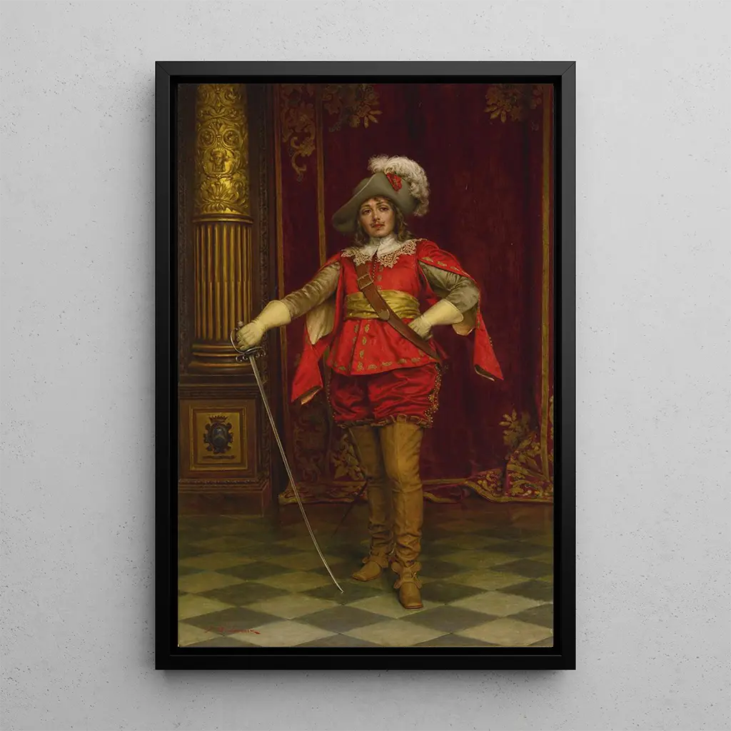 Le Cavalier : eine Ode an Mut und Noblesse In "Le Cavalier" fängt Frédéric Soulacroix die Essenz des Mutes durch eine reiche und dynamische Komposition ein. Das Gemälde, getaucht in warme, goldene Farben, evoziert eine Atmosphäre von Noblesse und Stolz. Die zentrale Figur, gekleidet in eine funkelnde Rüstung, steht stolz auf ihrem Pferd, während die umliegende Landschaft, zart gemalt, einen fernen Horizont andeutet. Die Technik von Soulacroix, die Realismus und Romantik verbindet, schafft eine emotionale Tiefe, die den Betrachter in eine Welt des Mutes und des Heldentums entführt. Frédéric Soulacroix : ein Meister des französischen Romantismus Frédéric Soulacroix, aktiv im 19. Jahrhundert, ist bekannt für seinen romantischen Stil, der Tradition und Innovation vereint. Beeinflusst von den großen Meistern der historischen Malerei, spezialisierte er sich auf Reiter- und Militärszenen und zeigte eine Faszination für den Mut der Helden. Sein Werk ist in eine Zeit eingebettet, in der sich die französische Kunst zu emotionaleren und dramatischeren Darstellungen entwickelt. Soulacroix hat den Geist seiner Zeit eingefangen und sich so zu einem unverzichtbaren Künstler dieser Epoche entwickelt, dessen Erbe durch seine ikonischen Werke weiterlebt. Eine dekorative Anschaffung mit vielfältigen Vorzügen Der kunstdruck des "Cavalier" ist ein dekoratives Stück, das jeden Raum bereichern wird, sei es ein Wohnzimmer, ein Büro oder ein Schlafzimmer. Seine Druckqualität und die Farbtreue ehren das Originalwerk und verleihen Ihrem Raum eine elegante und charaktervolle Note. Dieses Bild, mit seinem unbestreitbaren ästhetischen Reiz, lädt zur Betrachtung und Reflexion ein und macht jeden Blick zu einem besonderen Moment. Sich für diesen kunstdruck zu entscheiden, bedeutet, ein Stück Geschichte und Mut in Ihre Dekoration zu integrieren.