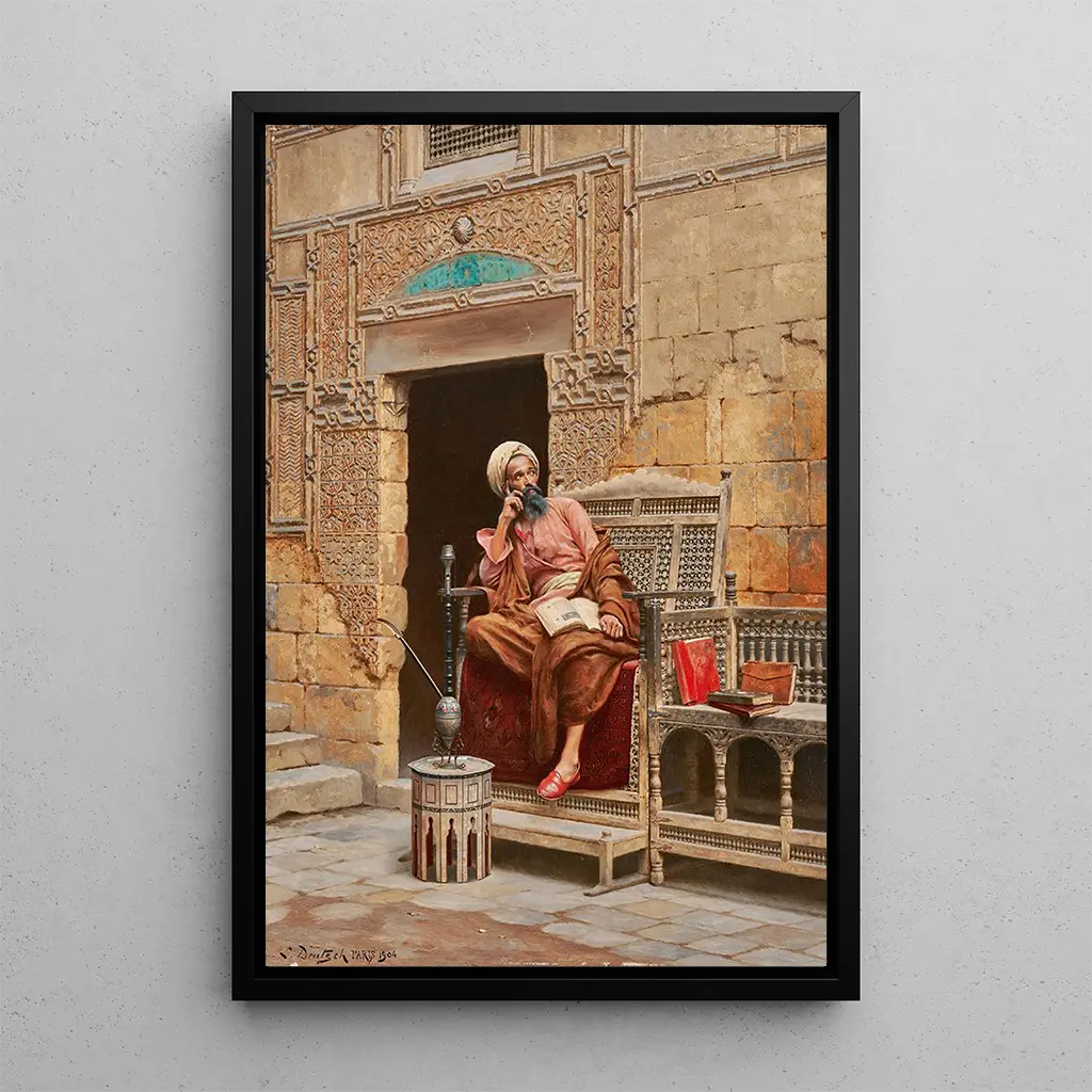 Ludwig Deutsch, peintre autrichien du XIXe siècle, est reconnu pour ses œuvres orientalistes qui capturent l'essence de l'Orient à travers un prisme de fascination et d'exotisme. Influencé par les voyages et les récits de ses contemporains, Deutsch a su créer des tableaux qui allient précision historique et imagination. Sa période de création, marquée par un intérêt croissant pour les cultures non occidentales, lui a permis de se démarquer dans le monde de l'art. Ses œuvres, comme celle du Scribe, témoignent d'une époque où l'Orient était perçu comme un lieu de mystère et de beauté, et où l'artiste cherchait à immortaliser cette vision.