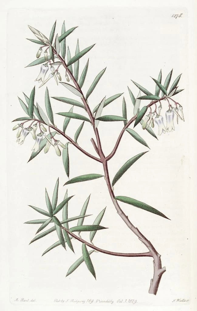 Sydenham Edwards, Botaniker und Illustrator des frühen 19. Jahrhunderts, prägte seine Zeit durch seine Beiträge zur botanischen Illustration. Seine Arbeit zeichnet sich durch eine sorgfältige und wissenschaftliche Herangehensweise aus, bei der Kunst zu einem Werkzeug des Wissens wird. Beeinflusst von den botanischen Expeditionen seiner Zeit, konnte er die Vielfalt der Pflanzen mit einem ausgeprägten Sinn für Details einfangen. Die australische Cranberry ist ein perfektes Beispiel für sein Talent, das Ästhetik und Präzision vereint und die Bedeutung der Botanik in der Kunst dieser Epoche unterstreicht.