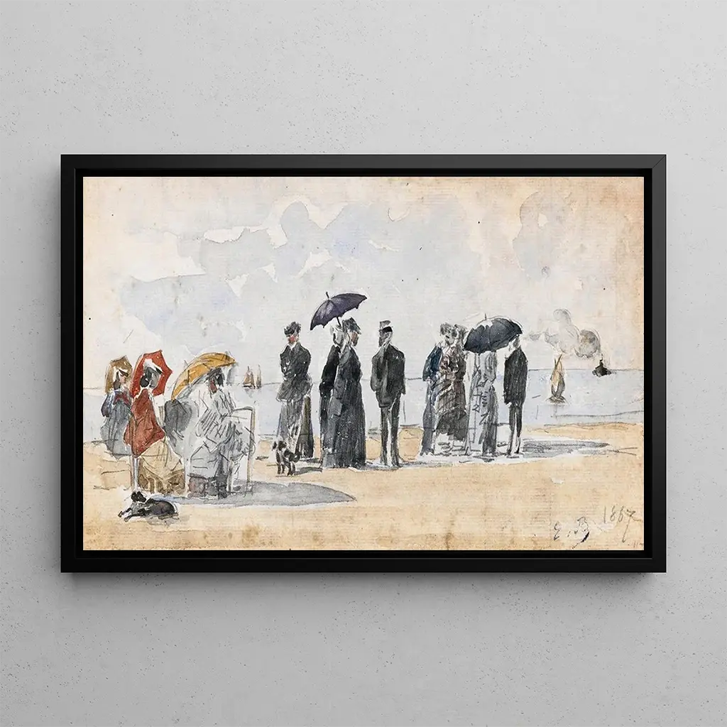 Les Crinolines : eine Tanz der Licht- und Farbenspiele Les Crinolines von Eugène Boudin fangen einen flüchtigen Moment des Pariser Lebens im 19. Jahrhundert ein. In diesem Werk entfalten sich die weiten, leichten Kleider der Frauen im Wind, wodurch eine Atmosphäre von Leichtigkeit und Bewegung entsteht. Die Farbpalette, dominiert von Pastelltönen, ruft die Sanftheit eines sonnigen Tages hervor, während die Lichtakzente auf den Stoffen eine fast ätherische Dimension hinzufügen. Die impressionistische Technik von Boudin, mit ihren schnellen, flüssigen Pinselstrichen, ermöglicht es, die Lebendigkeit der Szene zu spüren und den Betrachter in eine fröhliche, festliche Stimmung zu versetzen. Eugène Boudin : Vorreiter des Impressionismus Eugène Boudin gilt oft als einer der Vorreiter des Impressionismus und hat Künstler wie Claude Monet beeinflusst. Geboren 1824 in Honfleur, begann er seine Karriere mit der Malerei maritimer Landschaften, bevor er sich Szenen des Alltags zuwandte. Sein Stil zeichnet sich durch eine besondere Aufmerksamkeit für Licht und Atmosphäre aus, Elemente, die in Les Crinolines allgegenwärtig sind. Boudin war auch einer der ersten Künstler, die im Freien malten, eine Praxis, die zum Markenzeichen der impressionistischen Bewegung wurde. Sein Werk zeugt von einer Epoche, in der die Kunst begann, sich von den akademischen Konventionen zu lösen. Eine dekorative Anschaffung mit vielfältigen Vorzügen Der kunstdruck von Les Crinolines ist ein ideales Dekorationsstück, um Ihrem Interieur einen Hauch von Eleganz zu verleihen. Ob im Wohnzimmer, Büro oder Schlafzimmer, dieses Bild evoziert eine Atmosphäre von Raffinesse und Leichtigkeit. Seine Qualität als Kunstdruck garantiert originale Farben und eine ästhetische Wiedergabe, die Kunstliebhaber begeistern wird. Mit der Wahl dieses Leinwandbildes entscheiden Sie sich für ein Werk, das nicht nur Ihren Raum verschönert, sondern auch eine Geschichte erzählt – die einer Epoche, in der Mode und Kunst sich harmonisch verbanden.