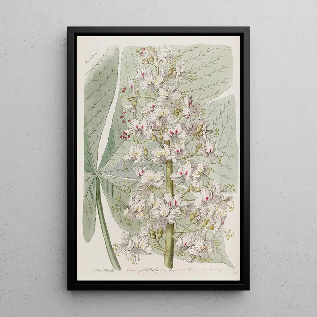 Der Ohio-Kastanienbaum: eine Feier der amerikanischen Flora „Der Ohio-Kastanienbaum“ von Sydenham Edwards ist eine lebendige und detaillierte Darstellung dieses majestätischen Baumes. Die satten Grüntöne und Brauntöne sowie die leuchtend weißen Blumen schaffen eine harmonische Komposition, die den Blick fesselt. Die Aquarelltechnik, meisterhaft angewandt, ermöglicht es, Licht und Schatten subtil wiederzugeben und jedem Blatt und jeder Blume Leben einzuhauchen. Die Atmosphäre, die dieses Werk ausstrahlt, erinnert an die Ruhe der amerikanischen Landschaften und lädt den Betrachter ein, in die natürliche Schönheit dieses ikonischen Baumes einzutauchen. Sydenham Edwards: der botanische Künstler im Dienste der Wissenschaft Sydenham Edwards, aktiv zu Beginn des 19. Jahrhunderts, prägte die Geschichte der botanischen Illustration durch seinen einzigartigen Ansatz. Beeinflusst von den wissenschaftlichen Fortschritten seiner Zeit, vereinte er Präzision und Ästhetik in seinen Werken. Edwards arbeitete mit Botanikern und Naturforschern zusammen und trug zur Dokumentation zahlreicher Pflanzenarten bei. Sein unverwechselbarer Stil, geprägt von akribischer Detailgenauigkeit, trug dazu bei, die Vielfalt der amerikanischen und europäischen Flora bekannt zu machen. Durch seine Arbeit hinterließ er ein nachhaltiges Erbe in der Welt von Kunst und Wissenschaft. Eine dekorative Reproduktion mit vielfältigen Vorzügen Die kunstdruck des „Ohio-Kastanienbaums“ ist eine perfekte Wahl, um Ihre Inneneinrichtung zu bereichern. Ob im Wohnzimmer, im Büro oder im Schlafzimmer, diese Leinwand bringt einen Hauch von Natur und Eleganz in den Raum. Die Qualität der Reproduktion garantiert eine Treue zum Originalwerk, sodass jedes Detail und jede Nuance geschätzt werden kann. Durch die Integration dieses Bildes in Ihren Raum schaffen Sie eine beruhigende und inspirierende Atmosphäre und würdigen gleichzeitig die Schönheit der Bäume, die uns umgeben.