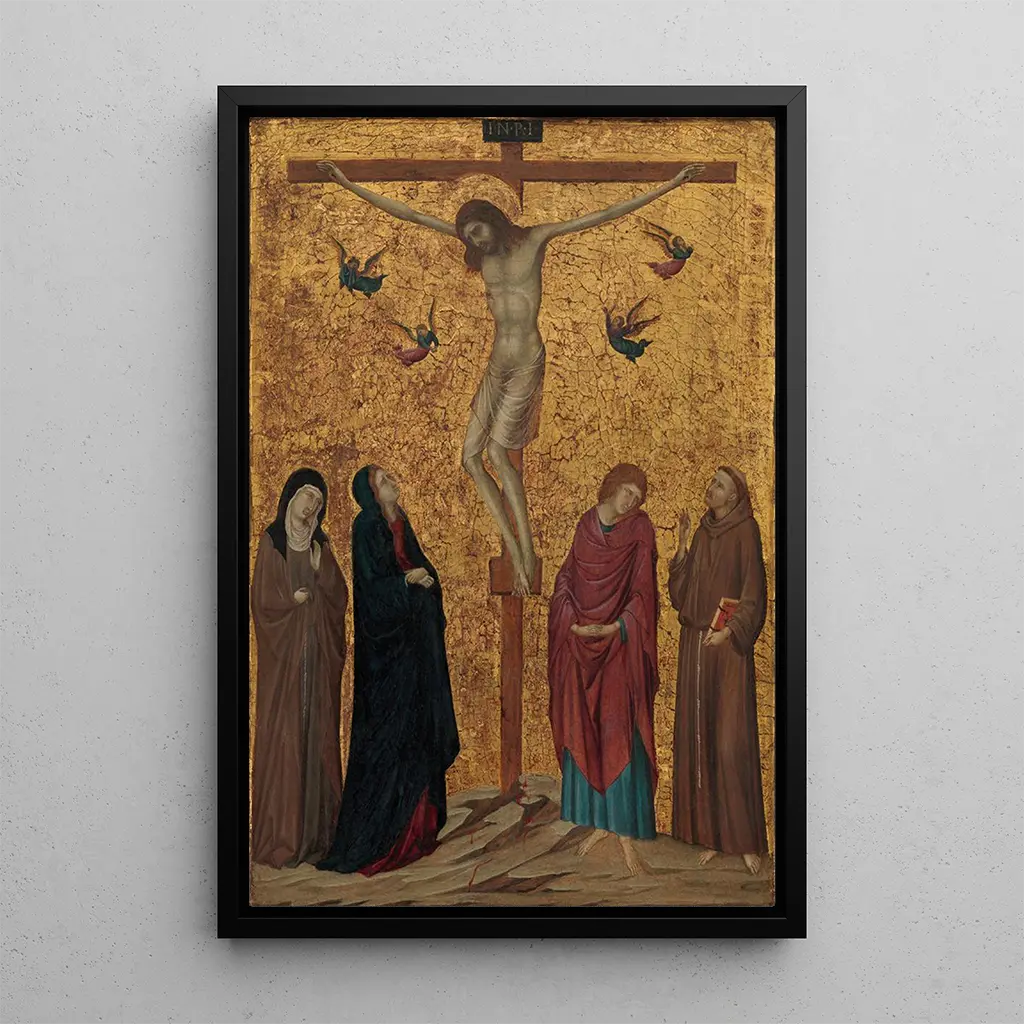 Ugolino da Siena, aktiv im 14. Jahrhundert, ist ein bedeutender Vertreter der sienesischen Schule. Beeinflusst von byzantinischen Traditionen und den Innovationen der italienischen Malerei, entwickelte er einen einzigartigen Stil, der Strenge und Ausdruckskraft vereint. Seine Werke, oft reich an religiösem Symbolismus, zeugen von einer Epoche, in der sakrale Kunst eine zentrale Rolle im Alltag spielte. Die Crucifixion veranschaulicht perfekt sein Talent, tiefe Emotionen durch stilisierte Figuren und harmonische Kompositionen zu vermitteln. Sein Erbe besteht fort und inspiriert zahlreiche Künstler über die Jahrhunderte hinweg.