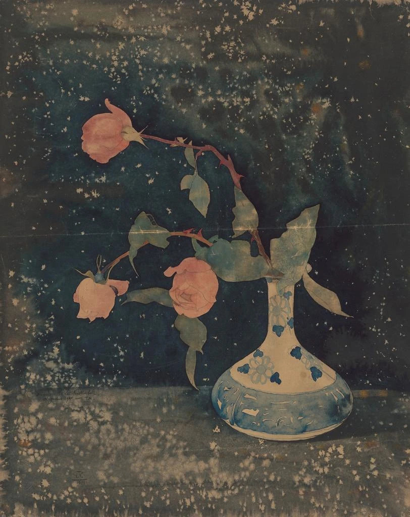 Drei Rosen in einer orientalischen Vase - Theo Nieuwenhuis