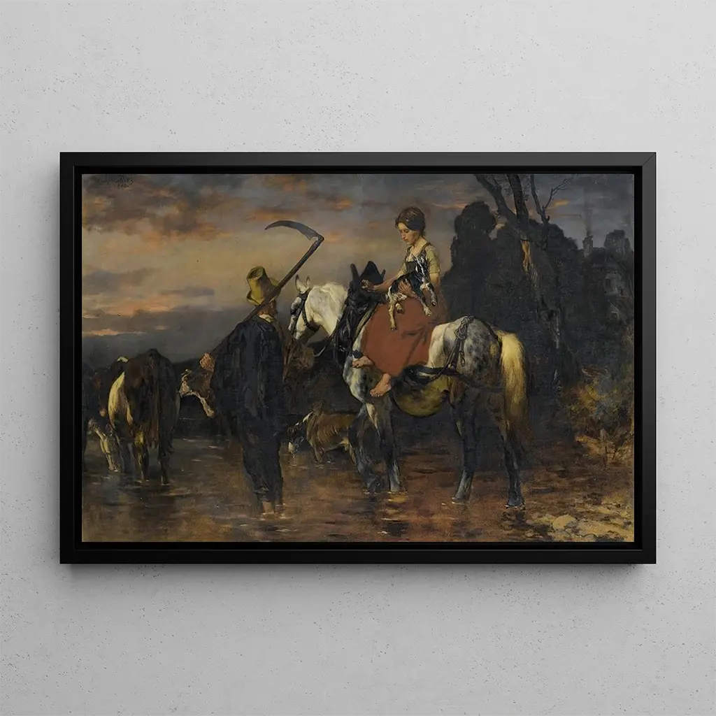 Traversée de la rivière : ein Reise ins Herz der wilden Natur Die Leinwand "Traversée de la rivière" von Wilhelm von Diez zeigt eine idyllische Szene, in der die Harmonie zwischen Mensch und Natur sich zart offenbart. Die sanften Farben und die Nuancen von Grün und Blau schaffen eine beruhigende Atmosphäre, während die Öltechnik auf Leinwand es ermöglicht, das Licht auf fast magische Weise einzufangen. Die Figuren, in voller Aktion, scheinen sich auf ein Abenteuer einzulassen, was die Idee einer Gemeinschaft mit der umgebenden Landschaft verstärkt. Dieses Kunstwerk lädt den Betrachter ein, zu entfliehen und die Schönheit der natürlichen Landschaften zu bewundern. Wilhelm von Diez : ein Meister des deutschen Romantismus Wilhelm von Diez, aktiv im 19. Jahrhundert, ist ein deutscher kunstdruckkünstler, dessen Werk im romantischen Bewegung verankert ist. Beeinflusst von Landschaften der Natur und den Themen des Landlebens, hat er Szenen eingefangen, die von Poesie und Empfindsamkeit geprägt sind. Seine Karriere war geprägt von einer ständigen Suche nach Authentizität, wobei er versuchte, die Schönheit der natürlichen Welt darzustellen und gleichzeitig erzählerische Elemente einzubringen. Die romantische Epoche, die eine Wertschätzung für Emotionen und Natur förderte, hat seinen Stil tief beeinflusst und ihn zu einem unverzichtbaren Künstler seiner Zeit gemacht. Eine dekorative Anschaffung mit vielfältigen Vorzügen Der kunstdruck von "Traversée de la rivière" ist eine ideale dekorative Wahl, um Ihr Interieur zu verschönern, sei es im Wohnzimmer, Büro oder Schlafzimmer. Seine Druckqualität und seine Treue zum Originalwerk garantieren eine unbestreitbare ästhetische Anziehungskraft. Durch die Integration dieses Kunstwerks in Ihre Dekoration bringen Sie eine Note von Gelassenheit und Natur in Ihren Raum und wecken gleichzeitig Interesse und Kontemplation. Dieses Bild ist nicht nur ein dekoratives Element, sondern auch eine Einladung zum Träumen und Entfliehen.