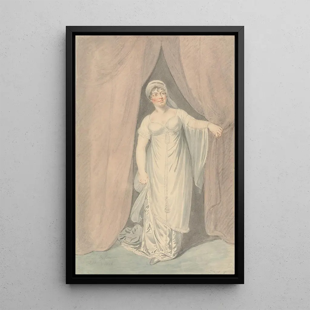 In dieser Kunstdruck-Reproduktion von Eine Schauspielerin fängt Samuel de Wilde die Essenz der weiblichen Schönheit mit bemerkenswerter Feinfühligkeit ein. Die Komposition hebt eine elegante Frauenfigur hervor, die in prächtigen Stoffen gehüllt ist, die fast greifbar erscheinen. Die Farben, reich und lebendig, erzeugen eine Atmosphäre, die sowohl intim als auch theatralisch ist, während das Licht eine entscheidende Rolle spielt und die zarten Gesichtszüge betont. Die Technik des Künstlers, die Realismus und Romantik verbindet, schafft eine starke emotionale Verbindung zum Betrachter und lädt zu einer längeren Betrachtung dieses Werks ein.