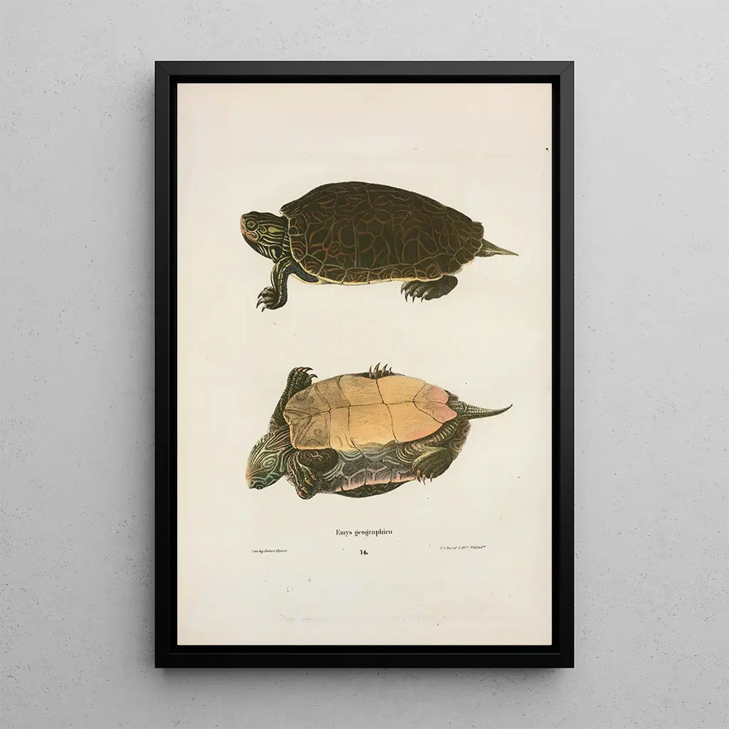 Der kunstdruck der Tortue géographique ist ein ideales Dekorationsstück, um Ihr Interieur zu bereichern, sei es im Wohnzimmer, Büro oder Schlafzimmer. Seine Druckqualität garantiert eine außergewöhnliche Treue zu den Details des Originalwerks, sodass jede Nuance und jedes Muster geschätzt werden kann. Mit seinem ästhetischen Reiz bringt dieses Leinwandbild einen Hauch von Natur und Eleganz in Ihre Dekoration. Durch die Wahl dieses kunstdrucks entscheiden Sie sich für ein Element, das nicht nur Ihren Raum verschönert, sondern auch eine faszinierende Geschichte über Biodiversität und die Kunst der Illustration erzählt.