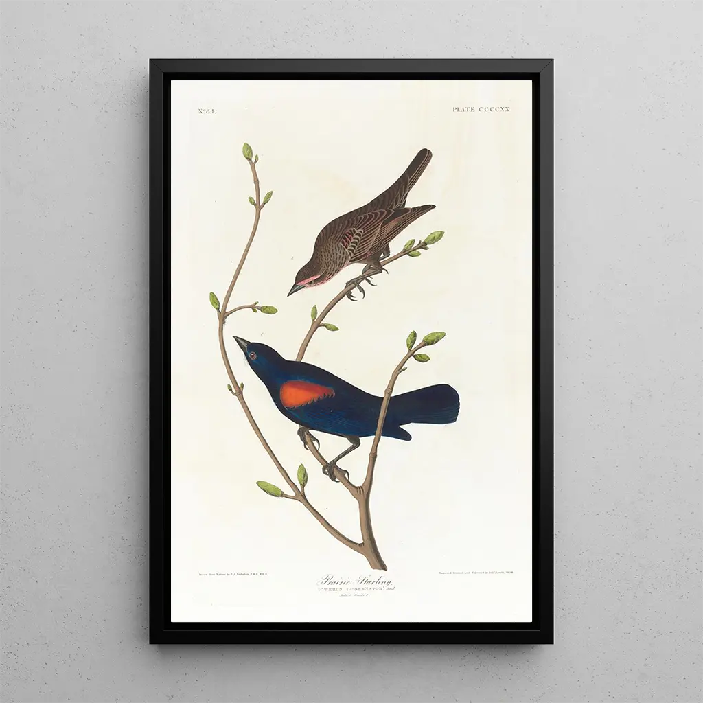 John James Audubon ist eine ikonische Figur der ornithologischen Kunst des 19. Jahrhunderts. Geboren 1785, widmete er sein Leben der Studie und Darstellung der Vögel Amerikas und wurde so zu einem Pionier auf diesem Gebiet. Seine Werke, beeinflusst vom Romantizismus, versuchen, die Schönheit und Vielfalt der Vogelwelt einzufangen. Der Étourneau des prairies ist eine seiner beliebtesten Illustrationen und zeugt von seinem Engagement, Kunst und Wissenschaft zu verbinden. Durch seine Arbeit hat Audubon nicht nur die Welt der Kunst bereichert, sondern auch das Bewusstsein für den Naturschutz geschärft.