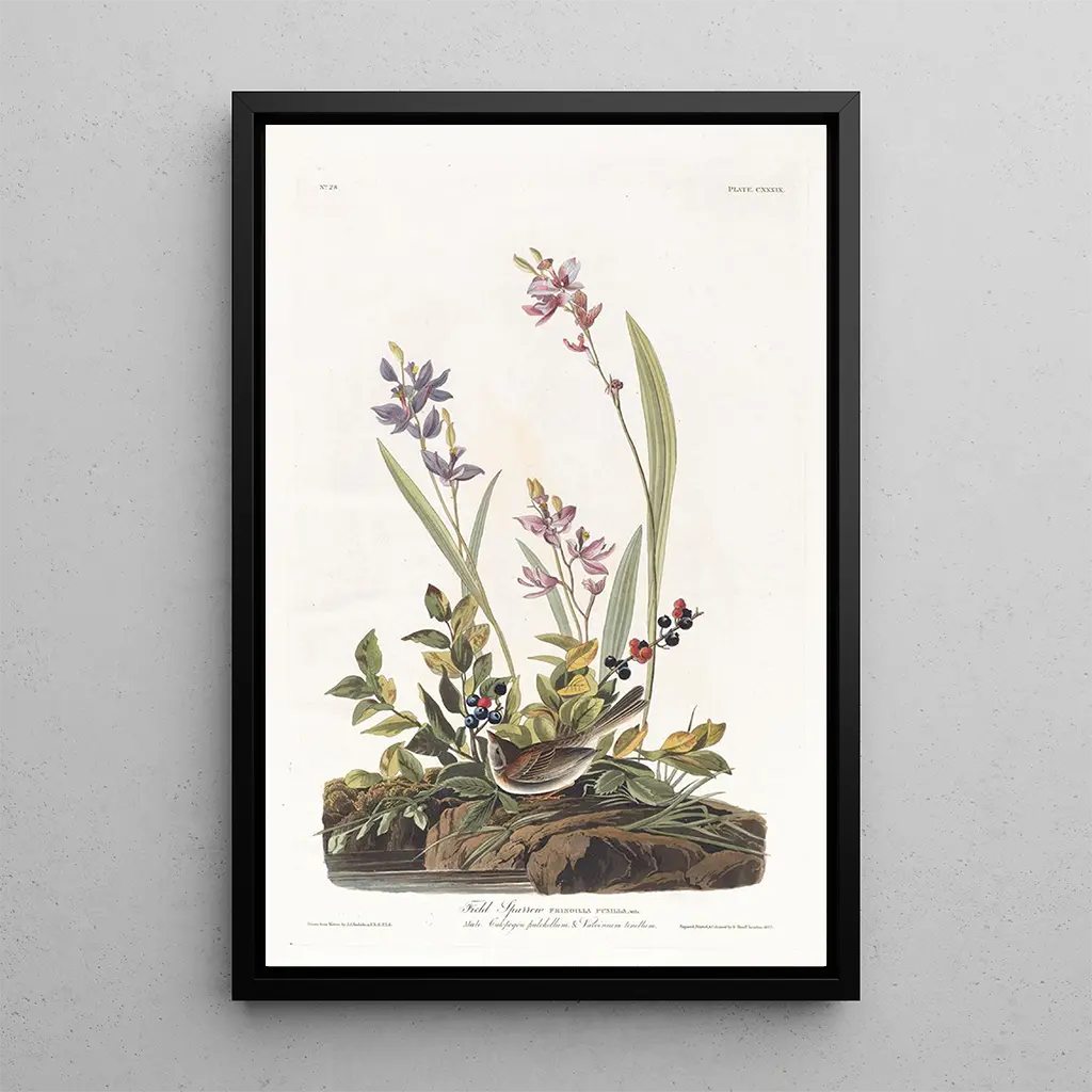 Das Gemälde "Bruant des champs" von John James Audubon ist eine wahre Ode an die Schönheit der Vogelwelt. Dieses Werk, mit bemerkenswerter Präzision ausgeführt, zeigt einen Bruch im leuchtenden Farbenspiel, das zwischen lebhaftem Gelb und erdigem Braun schwankt. Die Komposition ist sorgfältig ausbalanciert, mit einem zarten Hintergrund, der die Sanftheit der Wiesen evoziert. Die Technik von Audubon, die Aquarell und Zeichnung verbindet, verleiht dieser kunstdruck eine lebendige und dynamische Atmosphäre, die den Betrachter einlädt, in die natürliche Welt einzutauchen, in der diese Vögel leben.
