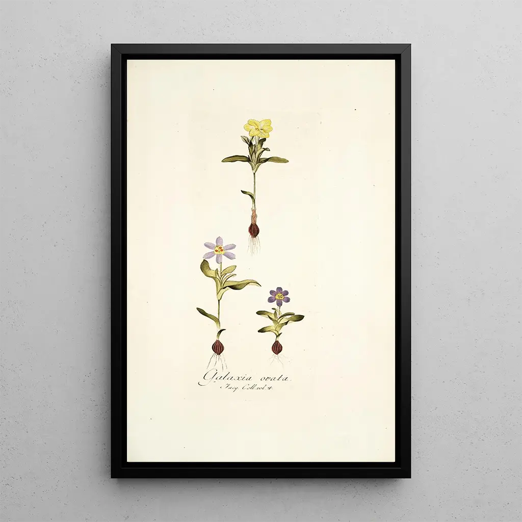 Die *kunstdruck* von Galaxia ovata entführt uns in eine faszinierende botanische Welt, in der sich die Nuancen von Grün und Blau harmonisch verbinden. Die zarten Blätter mit abgerundeten Konturen scheinen sich anmutig auszubreiten und vermitteln eine fast luftige Leichtigkeit. Die Aquarelltechnik, meisterhaft von Nikolaus Joseph Freiherr von Jacquin beherrscht, verleiht der Darstellung eine Transparenz, die jedem Detail Leben einhaucht und die Schönheit der Natur würdigt. Die Atmosphäre, die dieses Werk ausstrahlt, lädt zur Kontemplation ein, als ob jeder Pinselstrich eine Geschichte von Wachstum und Blüte erzählt.