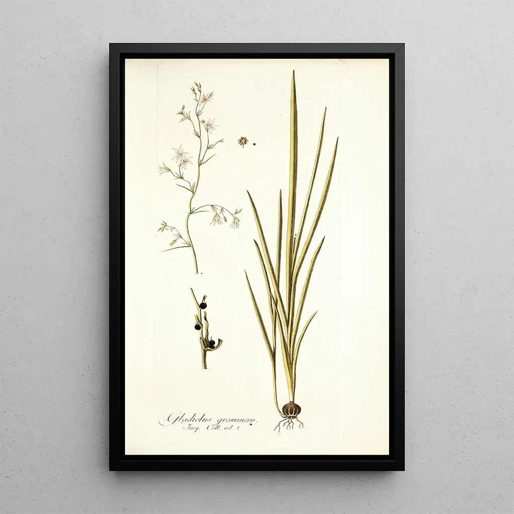 Gladiolus gramineus : eine zarte florale Harmonie Das Gemälde Gladiolus gramineus, geschaffen von Nikolaus Joseph Freiherr von Jacquin, entführt uns in eine botanische Welt, in der die Schönheit der Blumen mit bemerkenswerter Präzision hervorgehoben wird. Die lebendigen Farben dieses Gladiolus, die von zarten Grüntönen bis hin zu Rosé- und Weißnuancen reichen, schaffen eine Atmosphäre, die sowohl beruhigend als auch belebend wirkt. Die feine Aquarelltechnik ermöglicht es, die zarten Details der Blütenblätter und Blätter einzufangen und verleiht der gesamten Komposition eine Leichtigkeit. Dieses Gemälde lädt zu einer aufmerksamen Betrachtung ein und offenbart die Komplexität und Eleganz der Natur. Nikolaus Joseph Freiherr von Jacquin : ein Pionier der künstlerischen Botanik Nikolaus Joseph Freiherr von Jacquin, Botaniker und Künstler des 18. Jahrhunderts, spielte eine entscheidende Rolle bei der Erforschung und Darstellung von Pflanzen. In einer Zeit aufgewachsen, in der Wissenschaft und Kunst sich kreuzten, wurde Jacquin von den botanischen Entdeckungen seiner Zeit beeinflusst, insbesondere während seiner Reisen nach Südamerika und in die Karibik. Seine Leidenschaft für die Botanik führte dazu, Werke zu schaffen, die nicht nur die Flora dokumentieren, sondern auch ihre ästhetische Schönheit offenbaren. Als Mitglied der Akademie der Wissenschaften trug seine Arbeit zum Fortschritt der botanischen Kenntnisse bei und bereicherte gleichzeitig das künstlerische Erbe seiner Zeit. Eine dekorative Anschaffung mit vielfältigen Vorzügen Die reproduction des Gemäldes Gladiolus gramineus ist eine ideale dekorative Ergänzung für verschiedene Wohnräume, sei es ein Wohnzimmer, ein Büro oder ein Schlafzimmer. Die Druckqualität und die Treue zu den Originalfarben machen sie zu einem fesselnden Kunstwerk, das den Blick auf sich zieht und Bewunderung hervorruft. Durch die Integration dieses Leinwandbildes in Ihre Dekoration bringen Sie einen Hauch von Natur und Eleganz in Ihr Zuhause. Die ästhetische Anziehungskraft dieser reproduction liegt nicht nur in ihrer visuellen Schönheit, sondern auch in ihrer Geschichte, die jeden Blick zu einem Moment der Entdeckung und Flucht macht.