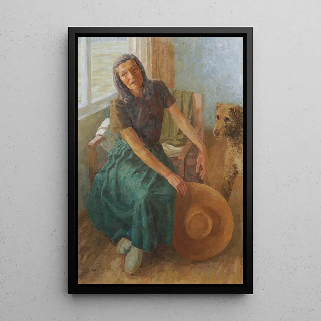 Grete Gamerith mit dem Hund Puck: Ein Moment der Zärtlichkeit, der in der Zeit eingefroren ist Das Leinwandbild "Grete Gamerith mit dem Hund Puck" von Walther Gamerith ist eine berührende Darstellung der Zuneigung zwischen einer Frau und ihrem vierbeinigen Begleiter. Die lebendigen Farben und die detaillierten Szenenmerkmale vermitteln eine Atmosphäre von Wärme und Geselligkeit. Die Öltechnik auf Leinwand ermöglicht es dem Künstler, mit Licht und Schatten zu spielen und die sanften Züge von Grete sowie die Lebendigkeit von Puck zu betonen. Dieses Kunstwerk fängt einen Moment einfachen Glücks ein und lädt den Betrachter ein, die Freude und die Verbundenheit zu spüren, die von dieser Beziehung ausgehen. Walther Gamerith: Ein Künstler im Herzen des Alltagslebens Walther Gamerith, Maler des 20. Jahrhunderts, hat sich durch seinen einzigartigen Ansatz in Porträt- und Alltagsdarstellungen etabliert. Beeinflusst von der impressionistischen Bewegung, legt er besonderen Wert auf die Darstellung gewöhnlicher Momente mit einer besonderen Sensibilität. Seine Werke, darunter "Grete Gamerith mit dem Hund Puck", zeugen von einer genauen Beobachtung seiner Motive, sei es bei Porträts oder Szenen des häuslichen Lebens. Gamerith hat die Essenz seiner Modelle eingefangen und flüchtige Augenblicke in ewige Erinnerungen verwandelt. Eine dekorative kunstdruck mit vielfältigen Vorzügen Der kunstdruck von "Grete Gamerith mit dem Hund Puck" ist eine charmante Ergänzung für jede Innendekoration. Ob im Wohnzimmer, Spielzimmer oder Büro – dieses Bild bringt eine Note von Sanftheit und Geselligkeit. Die Druckqualität sorgt für eine bemerkenswerte Farbtreue und Detailgenauigkeit des Originalwerks, wodurch eine einladende und warme Atmosphäre entsteht. Mit der Wahl dieses Kunstwerks verleihen Sie Ihrem Raum eine Note von Eleganz und Zärtlichkeit und feiern gleichzeitig die einzigartige Verbindung zwischen Mensch und Tier.