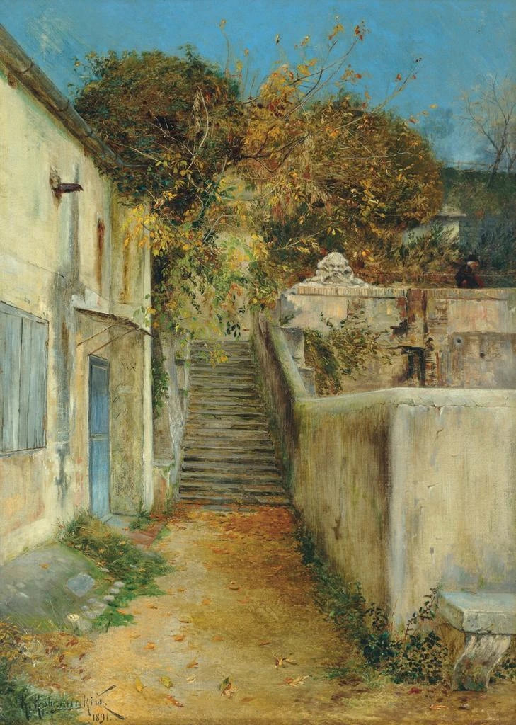 Kryzhitsky, aktiv Ende des 19. Jahrhunderts, ist bekannt für seine Fähigkeit, die Schönheit russischer Landschaften einzufangen, insbesondere die der Krim. Beeinflusst von der impressionistischen Bewegung, verstand er es, Licht- und Farbelemente zu integrieren, die seinen Werken Leben einhauchen. Sein Stil zeichnet sich durch eine besondere Aufmerksamkeit für natürliche Details aus, während er gleichzeitig eine poetische Herangehensweise bewahrt. "Automne en Crimée" zeugt von seinem Talent, die Natur in ihrer ganzen Pracht darzustellen, und spiegelt die Bedeutung der Krim als künstlerisches Reiseziel zu jener Zeit wider.