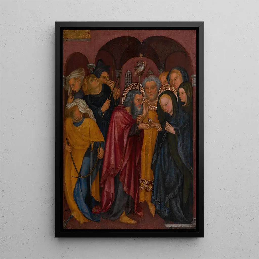Der Hochzeit der Jungfrau : eine Feier der heiligen Liebe "Der Hochzeit der Jungfrau" von Michelino da Besozzo ist ein Werk, das die Schönheit und die Feierlichkeit eines heiligen Moments widerspiegelt. Die dynamische Komposition, bei der die Figuren sorgfältig angeordnet sind, lenkt den Blick auf die Mitte der Szene, wo die Vereinigung von Maria und Joseph gefeiert wird. Die lebendigen Farben und die detaillierten Kleidung- und Gesichtsdarstellungen verleihen dieser Darstellung eine lebendige Ausstrahlung. Die Atmosphäre ist von Gelassenheit und Andacht geprägt und lädt den Betrachter ein, die spirituelle Tiefe dieses Ereignisses zu contemplieren. Michelino da Besozzo : ein Künstler der frühen Renaissance Michelino da Besozzo, aktiv im frühen 15. Jahrhundert, ist ein italienischer Maler, der zum Aufstieg der Renaissance in Lombardei beigetragen hat. Beeinflusst von gotischen und byzantinischen Stilen, verstand er es, Elemente der Perspektive und des Realismus in seine Werke zu integrieren. Obwohl er weniger bekannt ist als andere Meister seiner Zeit, spielte Besozzo eine bedeutende Rolle in der Entwicklung religiöser Malerei, wobei er den Fokus auf Emotionen und Erzählung legte. Sein Werk, insbesondere "Der Hochzeit der Jungfrau", zeugt von einem Übergang zu einer menschlicheren und zugänglicheren Darstellung der heiligen Themen. Eine dekorative kunstdruck mit vielfältigen Vorzügen Der kunstdruck von "Der Hochzeit der Jungfrau" ist eine ideale Wahl, um Ihre Inneneinrichtung zu bereichern. Ob im Wohnzimmer, Esszimmer oder Büro, dieses Leinwandbild verleiht Eleganz und Spiritualität. Seine Druckqualität und die Beachtung der Originaldetails machen es zu einem ansprechenden Stück, das Ihre Gäste begeistern wird. Durch die Integration dieses Werks in Ihren Raum verschönern Sie nicht nur Ihr Zuhause, sondern würdigen auch die Kunst und Geschichte, wodurch eine inspirierende und warme Atmosphäre entsteht.
