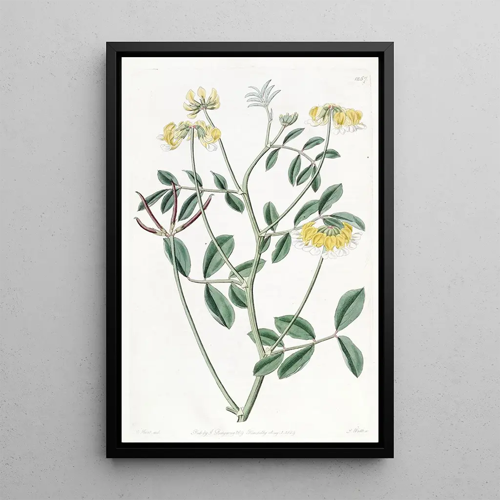 Der kunstdruck von Hosackia bicolore ist ein ideales dekoratives stück, um ihr zuhause zu verschönern, sei es im wohnzimmer, büro oder schlafzimmer. Die druckqualität garantiert eine bemerkenswerte treue zu den farben und details des originalwerks, während sie gleichzeitig einen frischen und natürlichen akzent in ihrem raum setzt. Die ästhetische anziehungskraft dieses leinwandbildes macht es zur perfekten wahl für diejenigen, die eine ruhige und inspirierende atmosphäre schaffen möchten, während sie die schönheit der blumen durch kunst feiern.