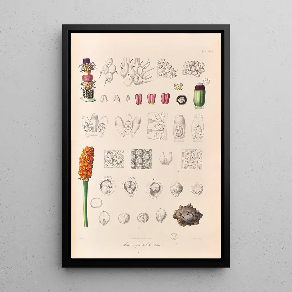 Icones Aroidearum Pl33 : eine Feier der pflanzlichen Biodiversität Die kunstdruck von Icones Aroidearum Pl33 entführt uns in eine faszinierende botanische Welt. Dieses Werk, mit akribischer Präzision gefertigt, hebt die Schönheit der Araceae durch lebendige Farben und zarte Details hervor. Die Nuancen von Grün, Gelb und Braun verschmelzen harmonisch und schaffen eine Atmosphäre, die sowohl lebendig als auch beruhigend ist. Die verwendete Gravurtechnik ermöglicht es, jede Ader der Blätter einzufangen und würdigt die Vielfalt der Natur. Beim Betrachten dieses Bildes fühlt man sich eingeladen, die Vielfalt der pflanzlichen Arten zu erkunden und gleichzeitig ihre Komplexität zu bewundern. Heinrich Wilhelm Schott : ein Pionier der künstlerischen Botanik Heinrich Wilhelm Schott, Botaniker und Illustrator des 19. Jahrhunderts, spielte eine entscheidende Rolle bei der Dokumentation tropischer Pflanzen. Sein Werk ist Teil der Bewegung der illustrierten Botanik, die Wissenschaft und Kunst verbinden wollte. Beeinflusst von den botanischen Expeditionen seiner Zeit, widmete Schott seine Karriere der Studie und Darstellung der Araceae, einer faszinierenden Pflanzenfamilie. Seine Illustrationen, wie die von Icones Aroidearum Pl33, zeugen von wissenschaftlicher Strenge und feiern gleichzeitig die natürliche Schönheit. Die Bedeutung seiner Arbeit liegt darin, seltene Arten zugänglich zu machen und unser Verständnis der Biodiversität zu vertiefen. Eine dekorative Anschaffung mit vielfältigen Vorteilen Die Wahl des kunstdrucks von Icones Aroidearum Pl33 bedeutet, ein dekoratives Stück zu wählen, das Ihrem Zuhause eine elegante Note verleiht. Ob im Wohnzimmer, im Büro oder im Schlafzimmer, dieses Bild passt perfekt zu verschiedenen Einrichtungsstilen, vom klassischen bis zum modernen. Die Druckqualität garantiert eine Farbtreue und Detailgenauigkeit des Originalwerks, was einen unverkennbaren ästhetischen Reiz bietet. Mit diesem kunstdruck in Ihrer Sammlung bereichern Sie nicht nur Ihren Raum, sondern laden auch die Natur ein, bei Ihnen Einzug zu halten, und schaffen eine ruhige, inspirierende Atmosphäre.