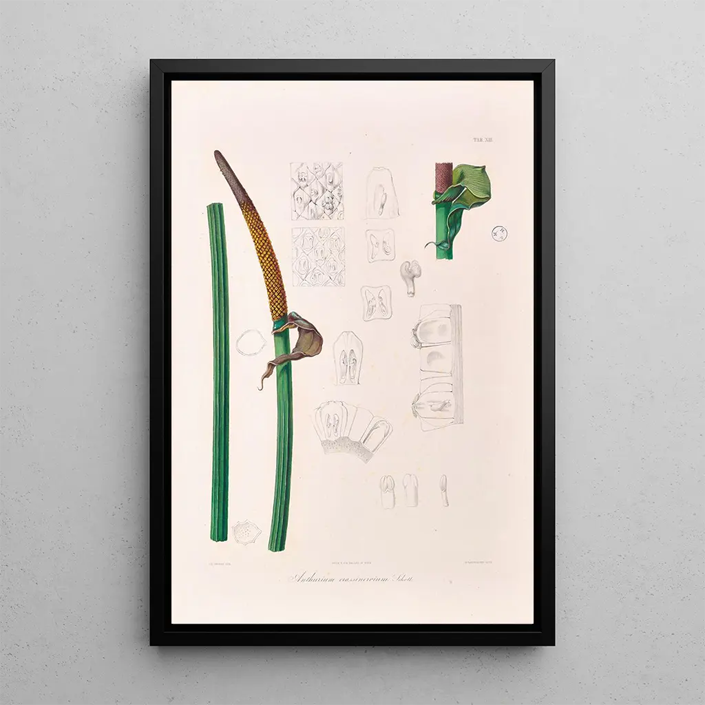 Der kunstdruck "Icones Aroidearum Pl13" ist ein dekoratives stück, das perfekt ist, um ihr zuhause zu verschönern, sei es im wohnzimmer, büro oder schlafzimmer. Die druckqualität garantiert eine bemerkenswerte treue bei farben und details des originalwerks und bringt einen touch natur in ihre dekoration. Dieses bild, sowohl ästhetisch als auch lehrreich, weckt interesse und neugier und ist ein ausgezeichneter gesprächsstoff. Indem Sie dieses leinwandbild in Ihren raum integrieren, wählen Sie eine dekoration, die die schönheit der botanischen welt feiert und gleichzeitig eine künstlerische dimension in ihre umgebung bringt.