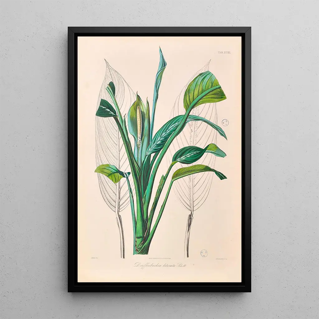 Die reproduction von "Icones Aroidearum Pl29" ist eine ideale Wahl für alle, die ihrem Zuhause einen Hauch von Eleganz und Natur verleihen möchten. Ob im Wohnzimmer, im Büro oder im Schlafzimmer, dieses botanische Bild fügt sich harmonisch in verschiedene Einrichtungsstile ein, vom klassischen bis zum modernen. Die Druckqualität garantiert eine bemerkenswerte Treue zu den Details des Originalwerks und bietet gleichzeitig eine unbestreitbare ästhetische Anziehungskraft. Mit dieser Leinwand entscheiden Sie sich nicht nur dafür, Ihren Raum zu verschönern, sondern laden auch ein Stück natürliche Schönheit in Ihren Alltag ein.